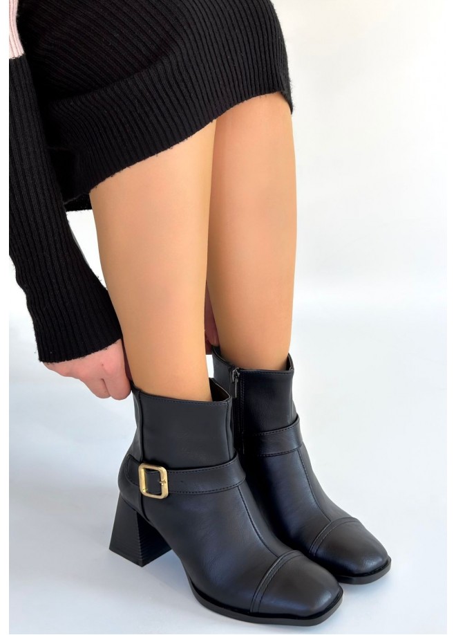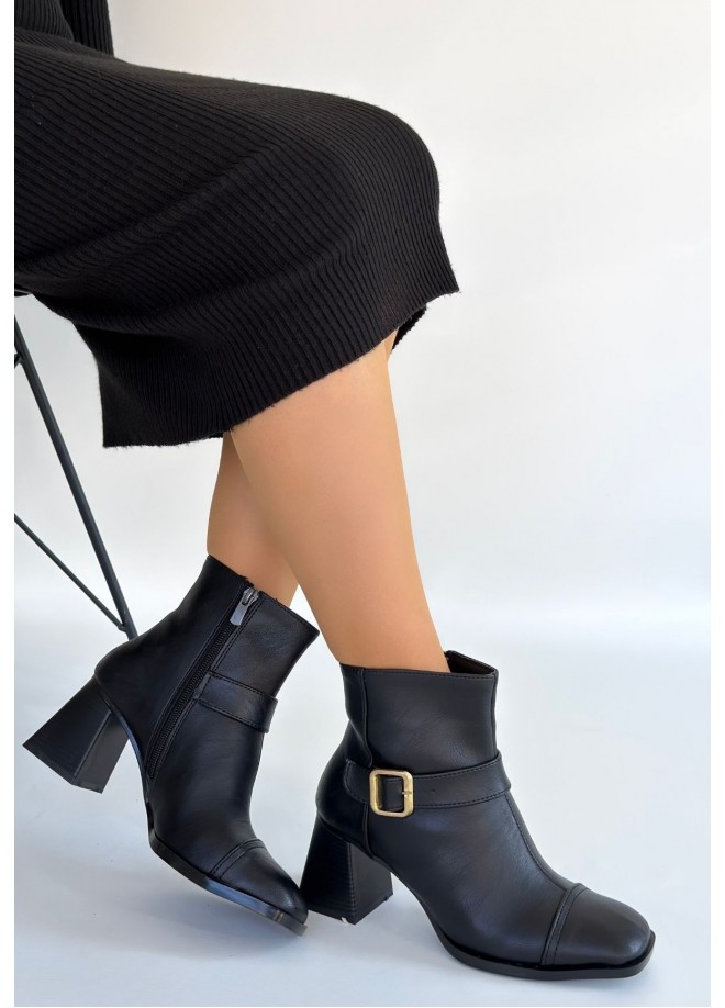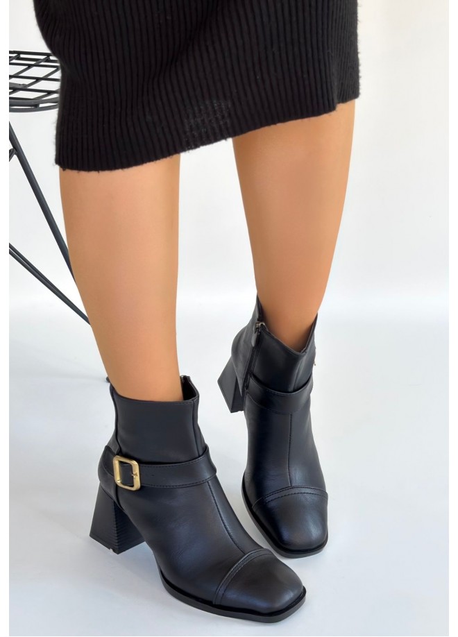 Mejjo Siyah Cilt Topuklu Bot