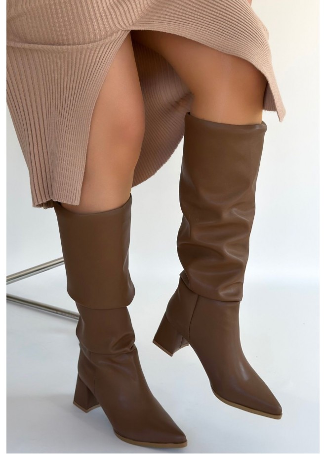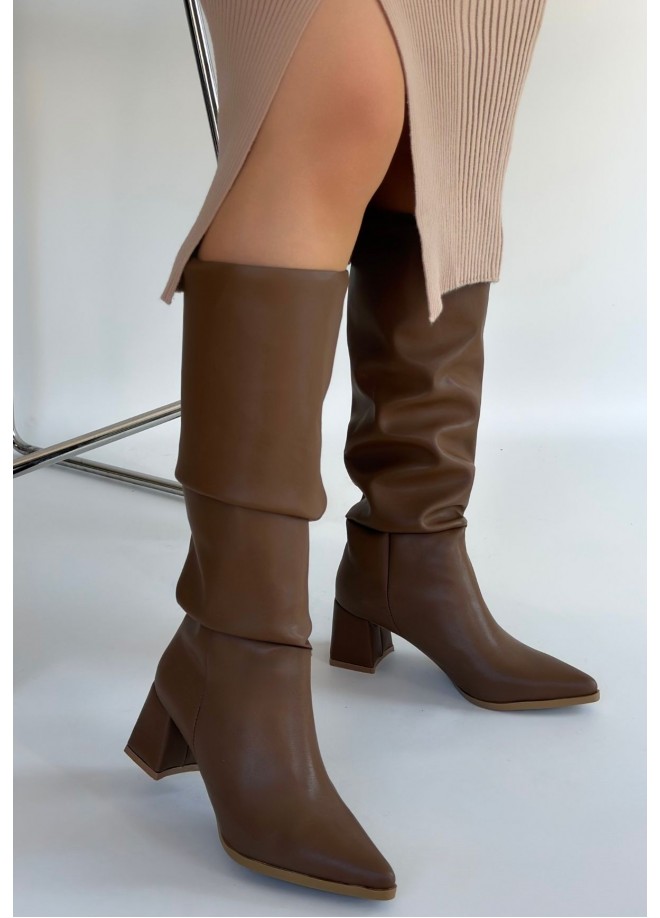 Detay: Topuklu Diz Altı Körüklü Çizme