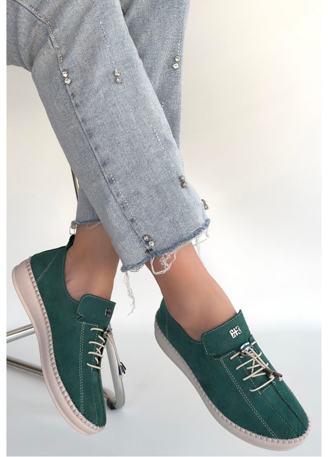 Warte Yeşil Süet Bağcıklı Spor Ayakkabı