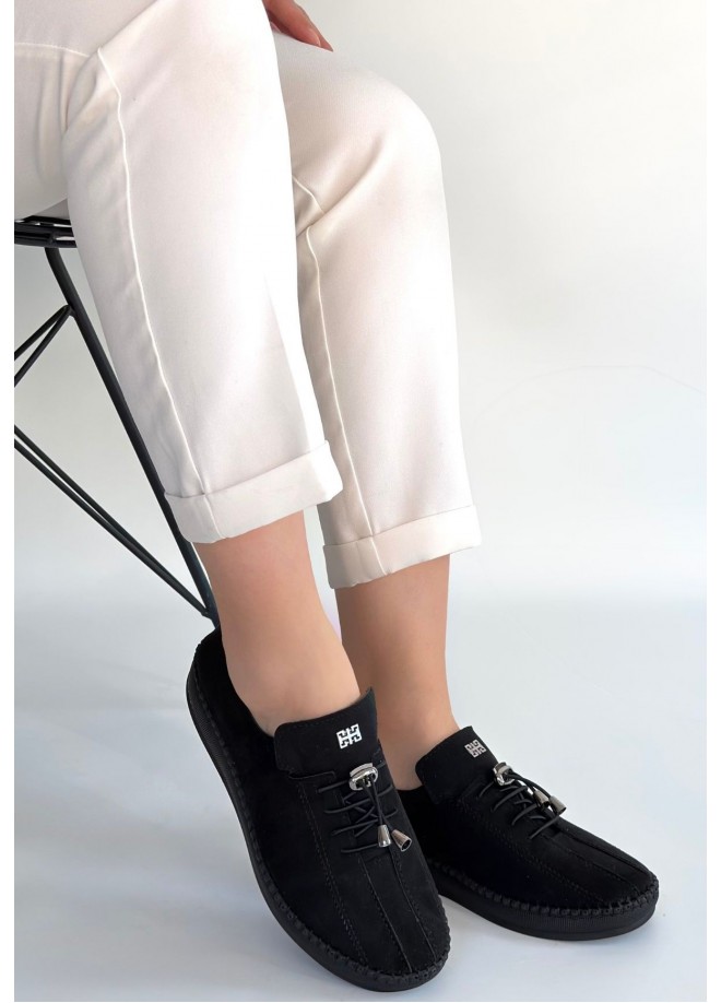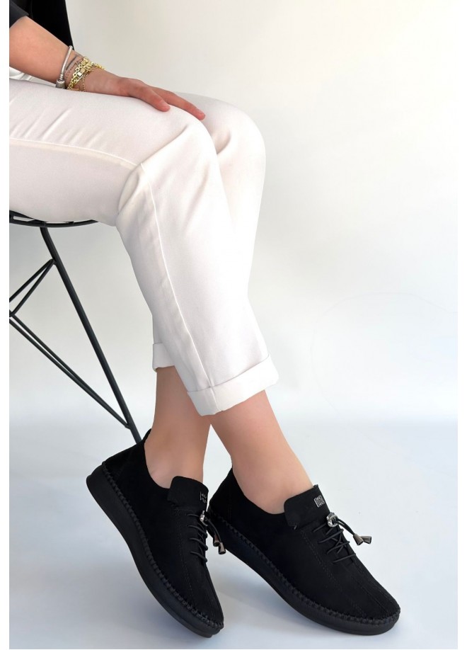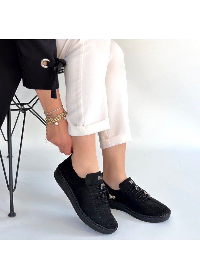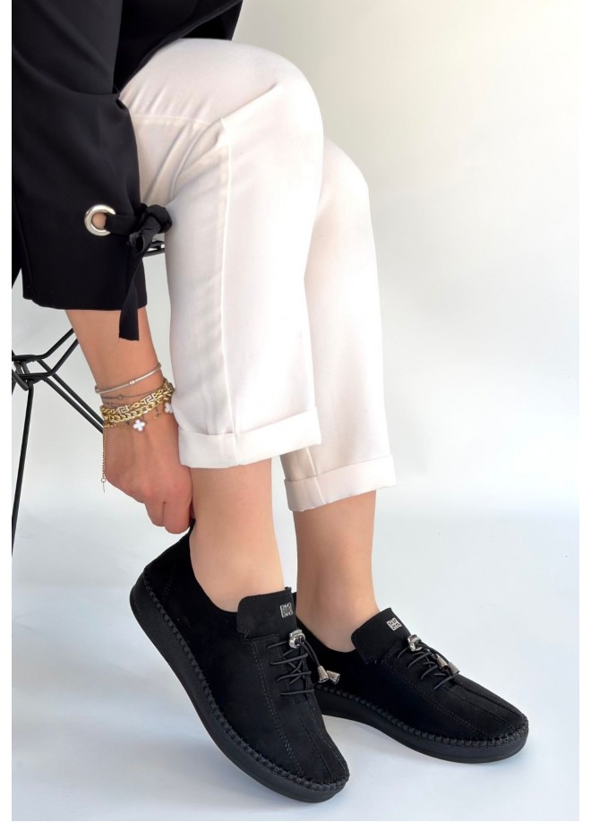Warte Siyah Süet Bağcıklı Spor Ayakkabı
