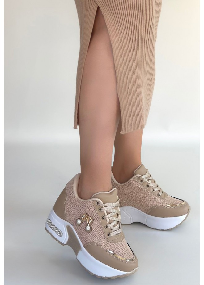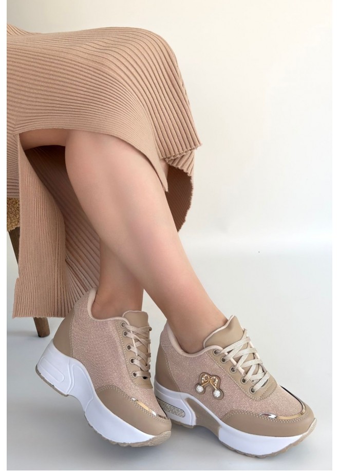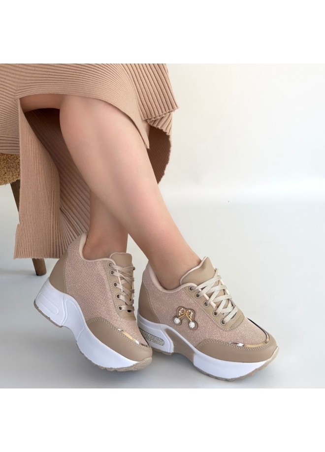 Wody Bej Cilt Simli Bağcıklı Spor Ayakkabı