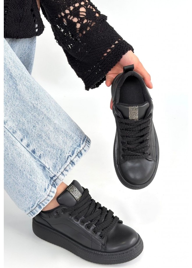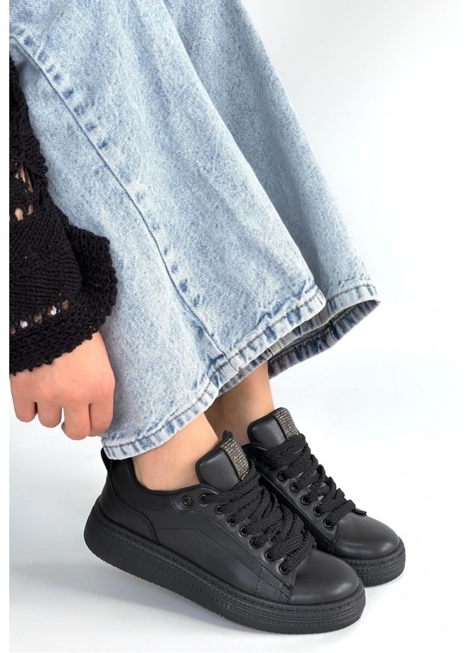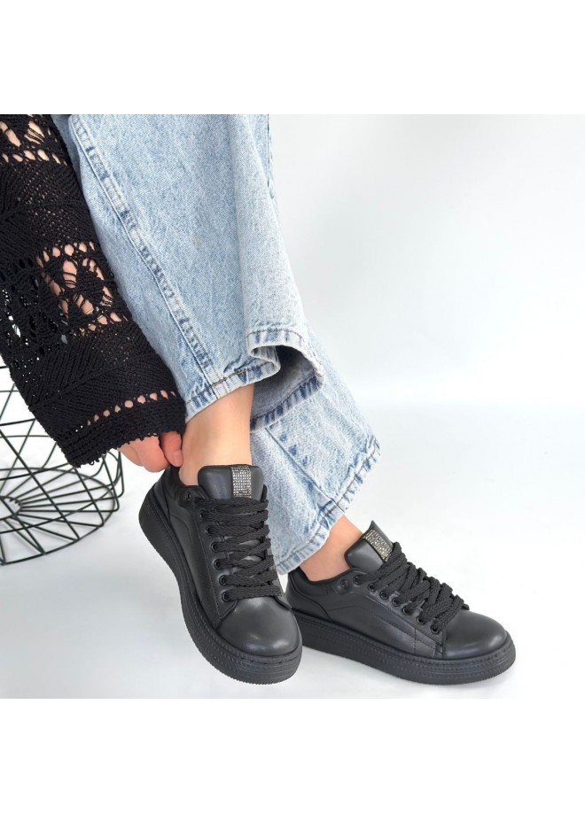 Yier Siyah Cilt Bağcıklı Spor Ayakkabı