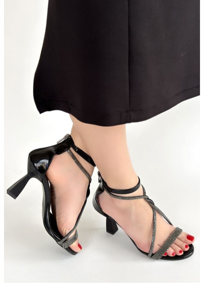 Yulia Siyah Rugan Topuklu Ayakkabı