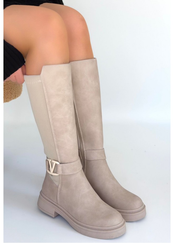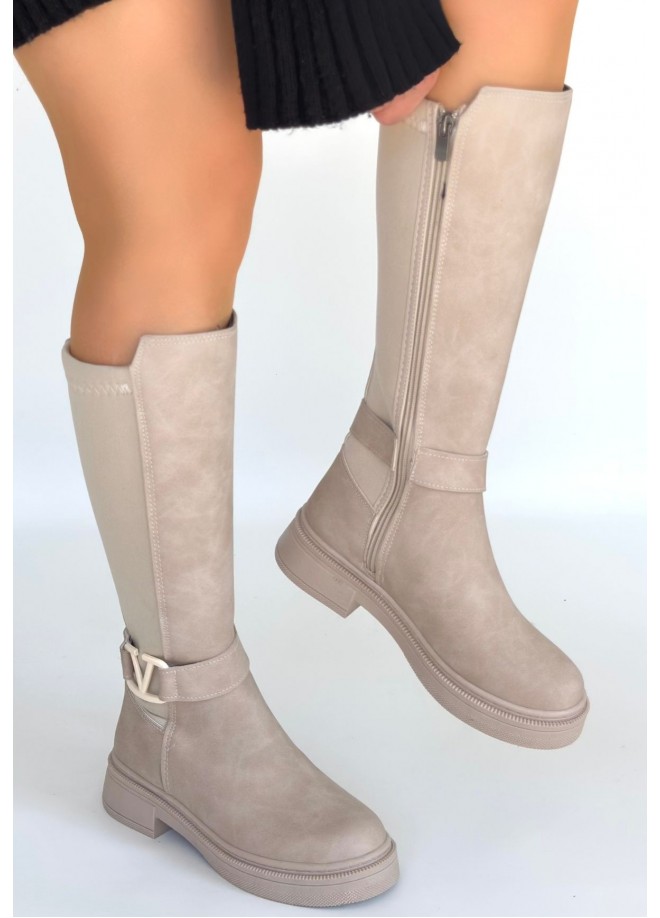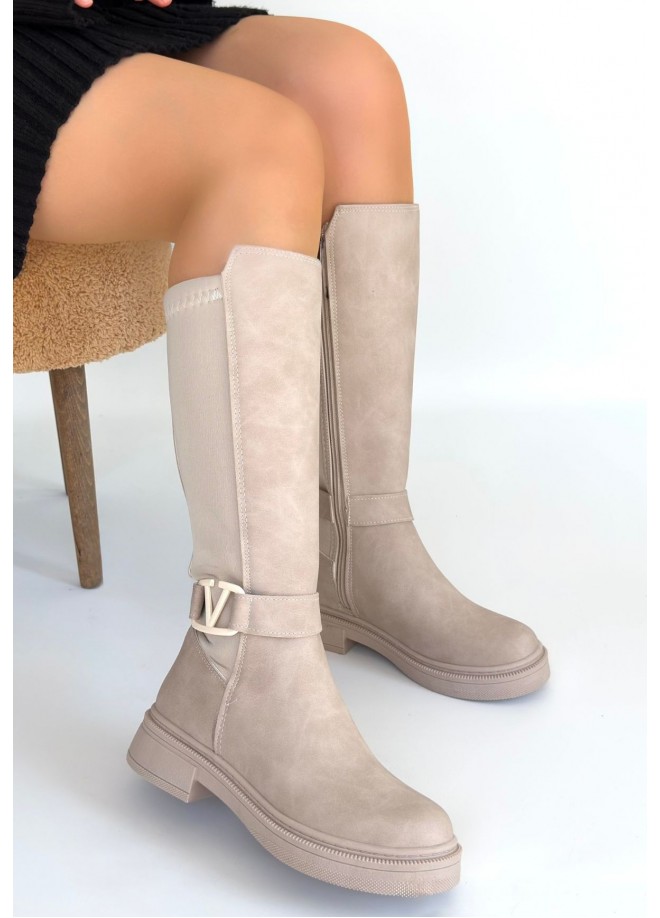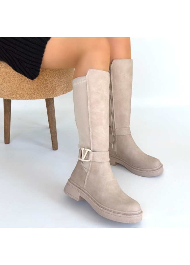 Detay: Topuklu Yandan Fermuarlı Diz Altı Çizme