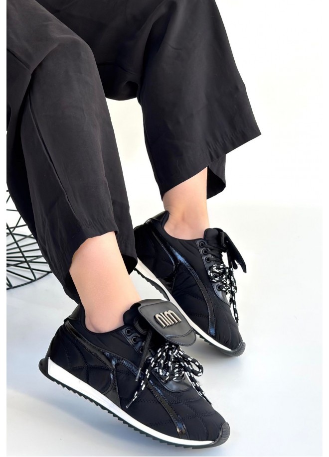 Dissa Siyah Cilt Bağcıklı Paraşüt Detaylı Spor Ayakkabı
