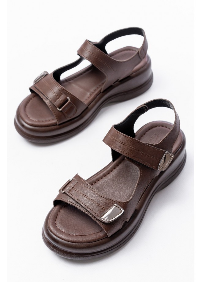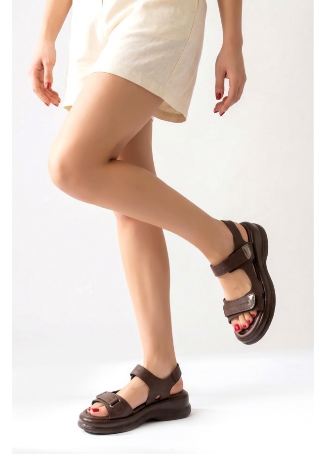 Ginya Kahverengi Cilt Cırt Cırtlı Sandalet