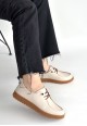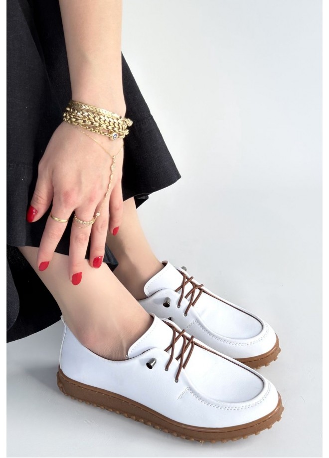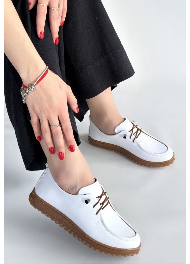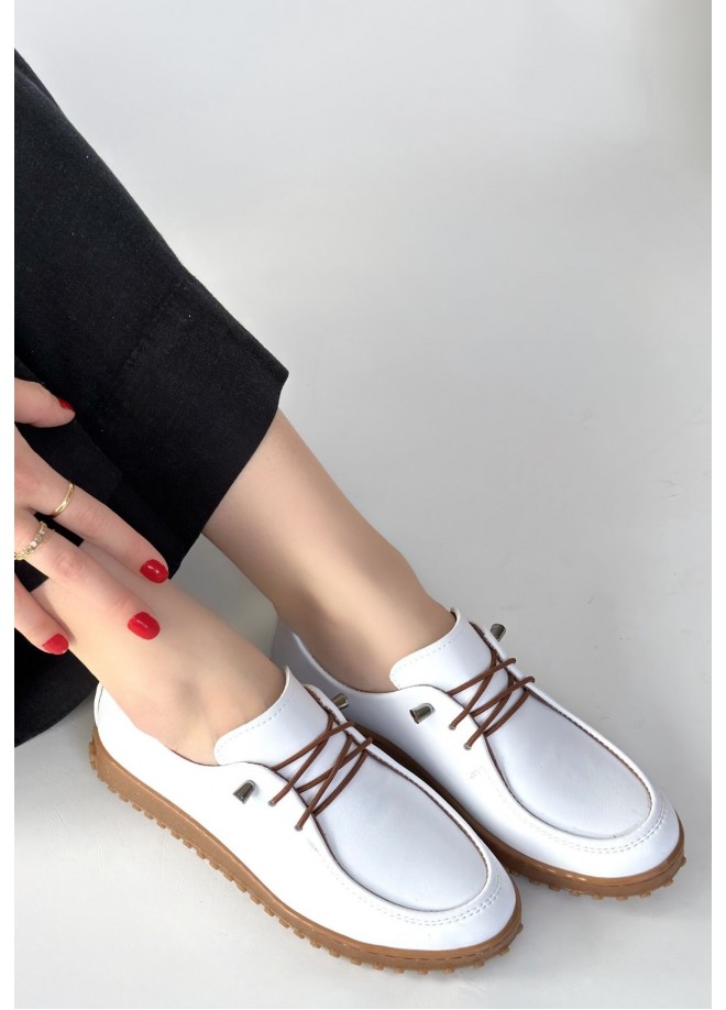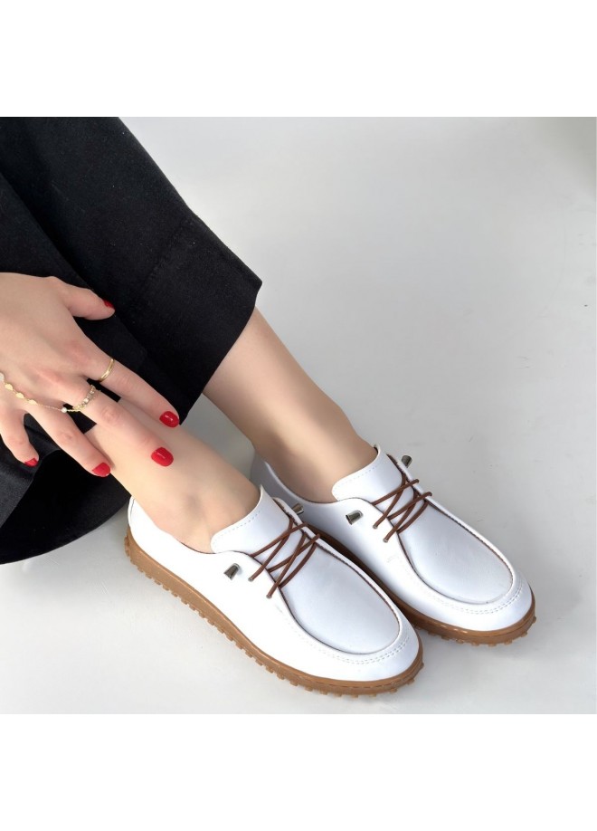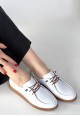 Guot Beyaz Cilt Bağcıklı Babet Ayakkabı