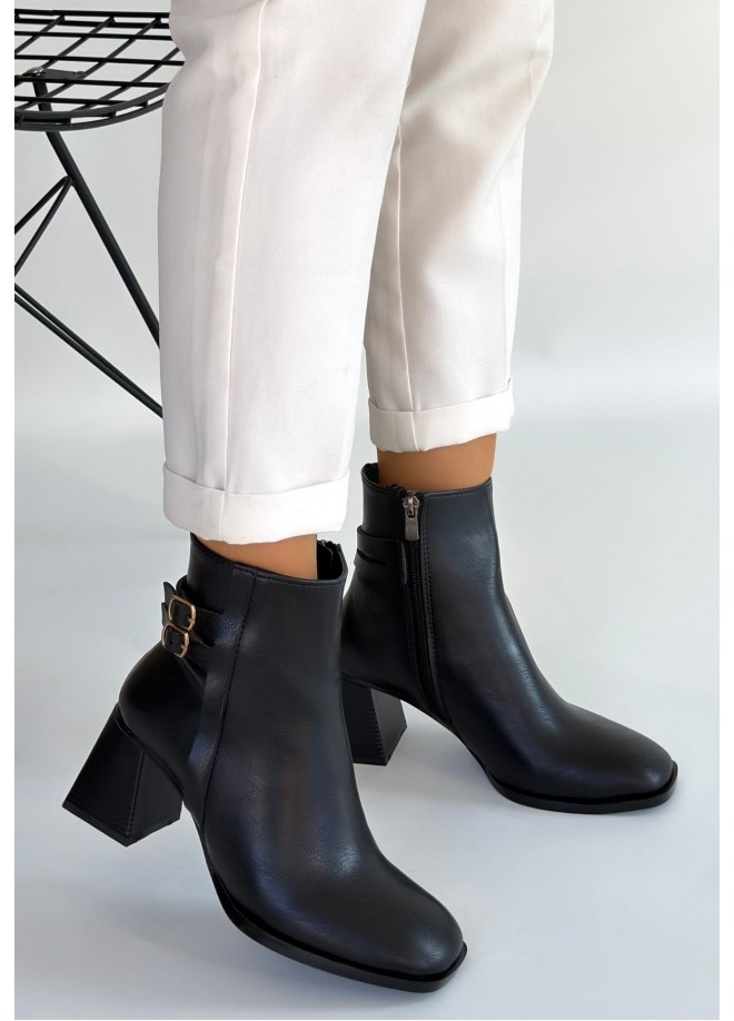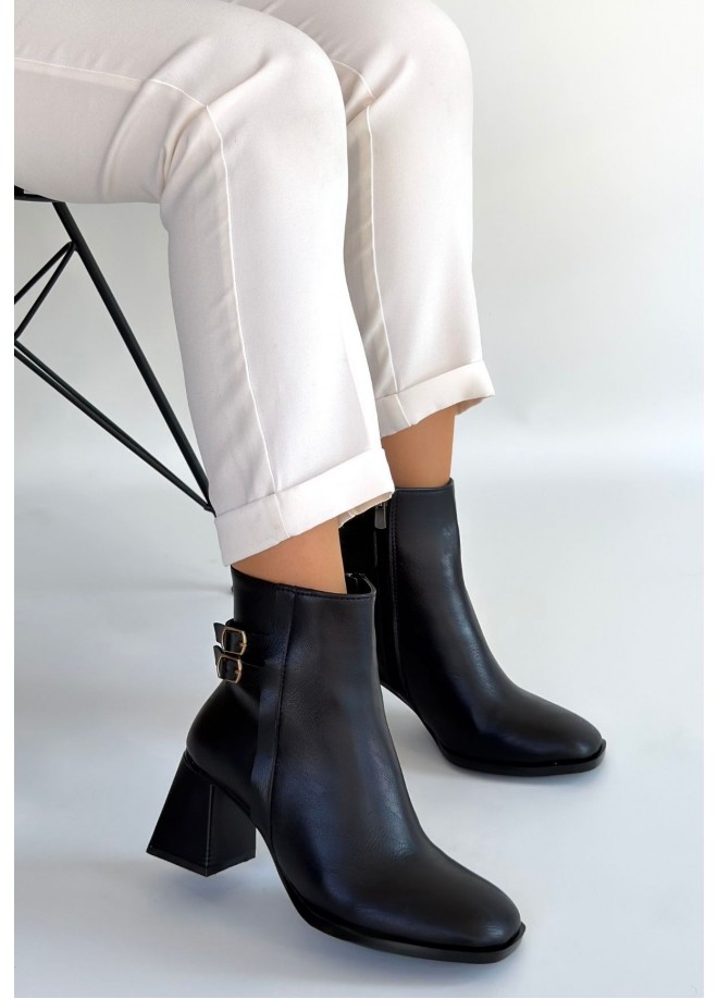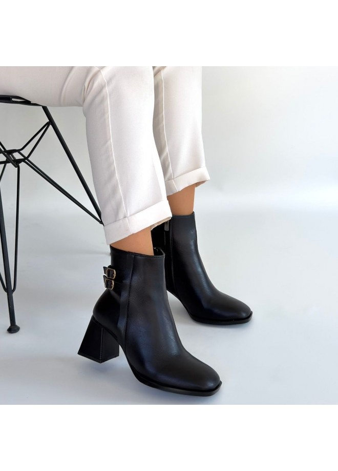 Kanda Siyah Cilt Topuklu Bot