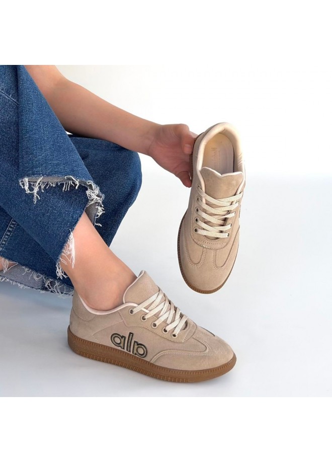 Lendo Bej Süet Bağcıklı Spor Ayakkabı