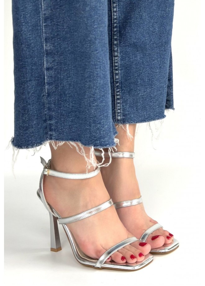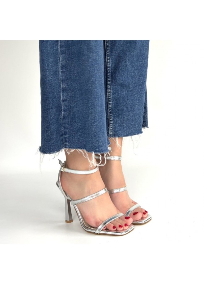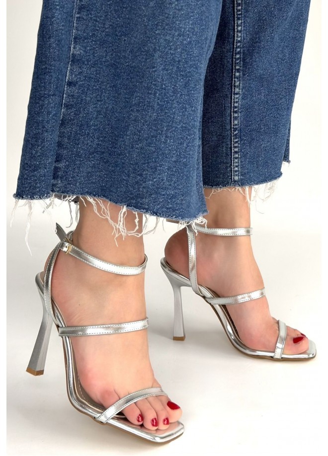 Umira Gümüş Rugan Topuklu Bilekten Kemerli Ayakkabı