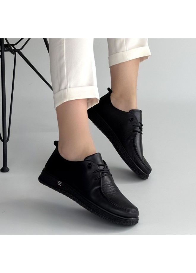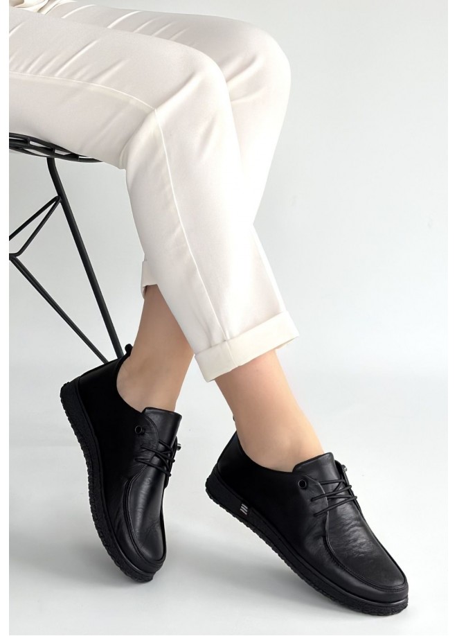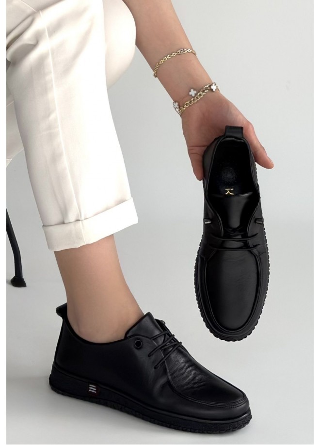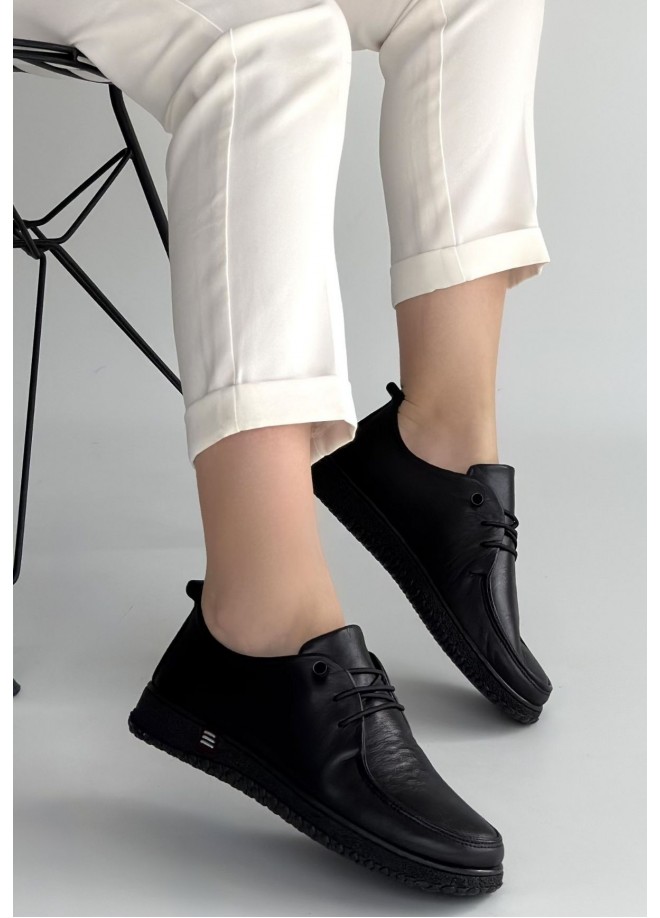 Mopin Siyah Deri Bağcıklı Spor Ayakkabı