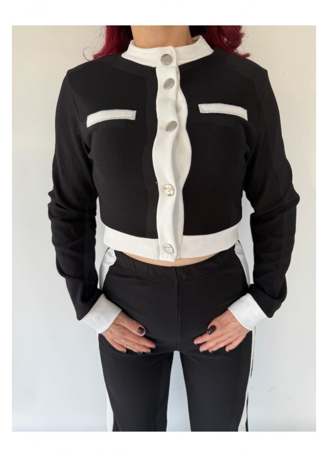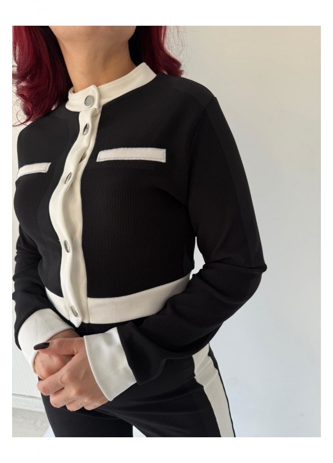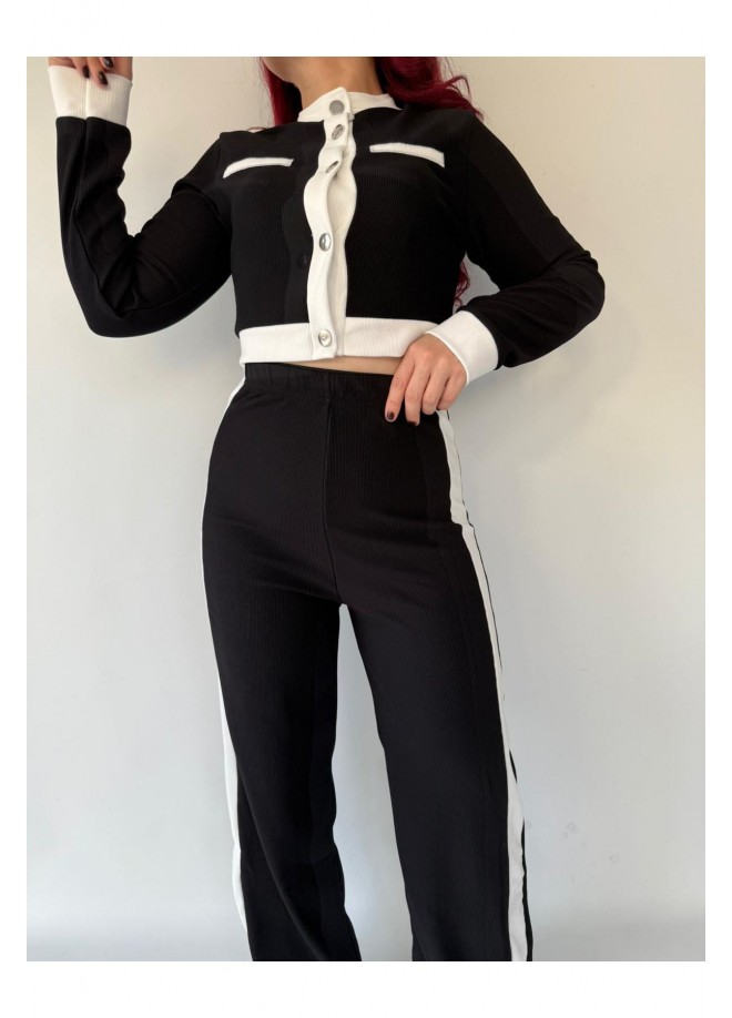 Kontrast Siyah Beyaz Şeritli İkili Takım
