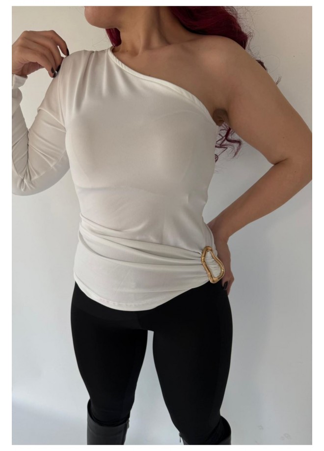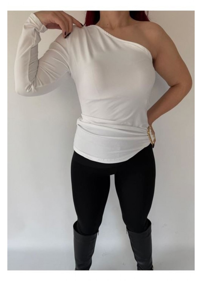 Opya Beyaz Tek Kollu Bluz