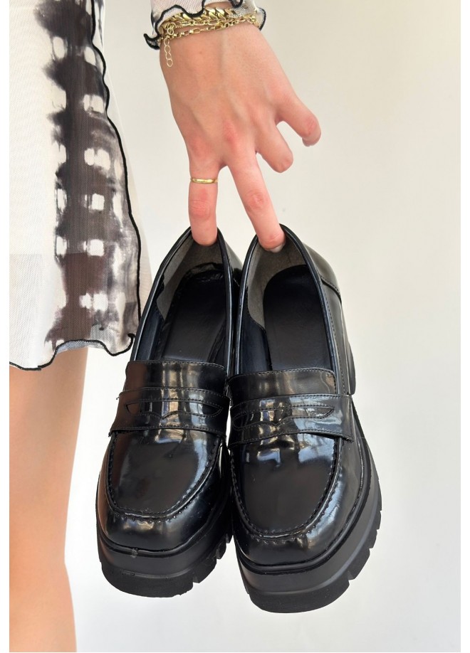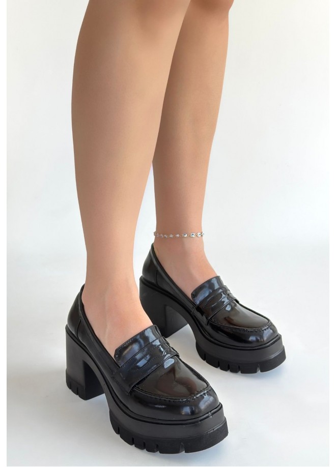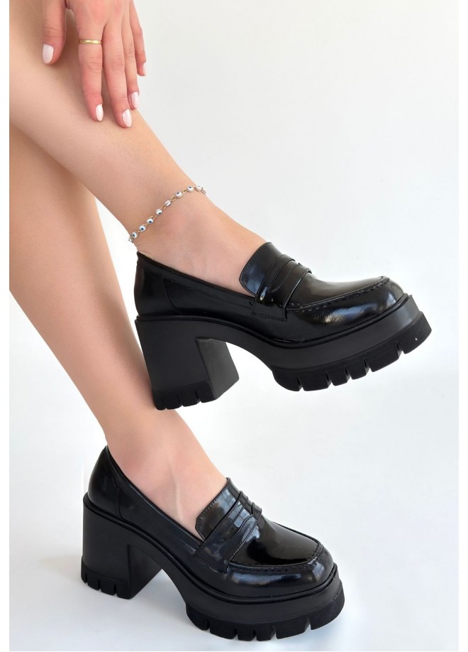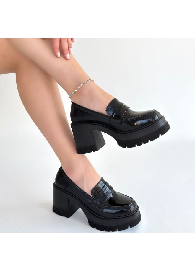 Janes Siyah Rugan Dolgu Topuk Ayakkabı