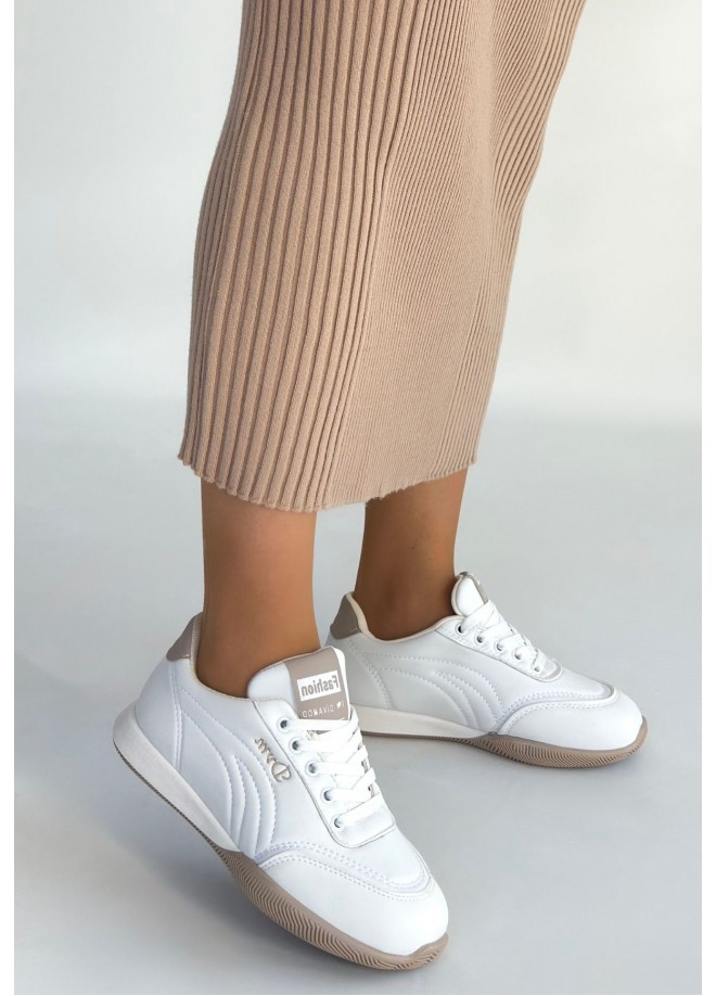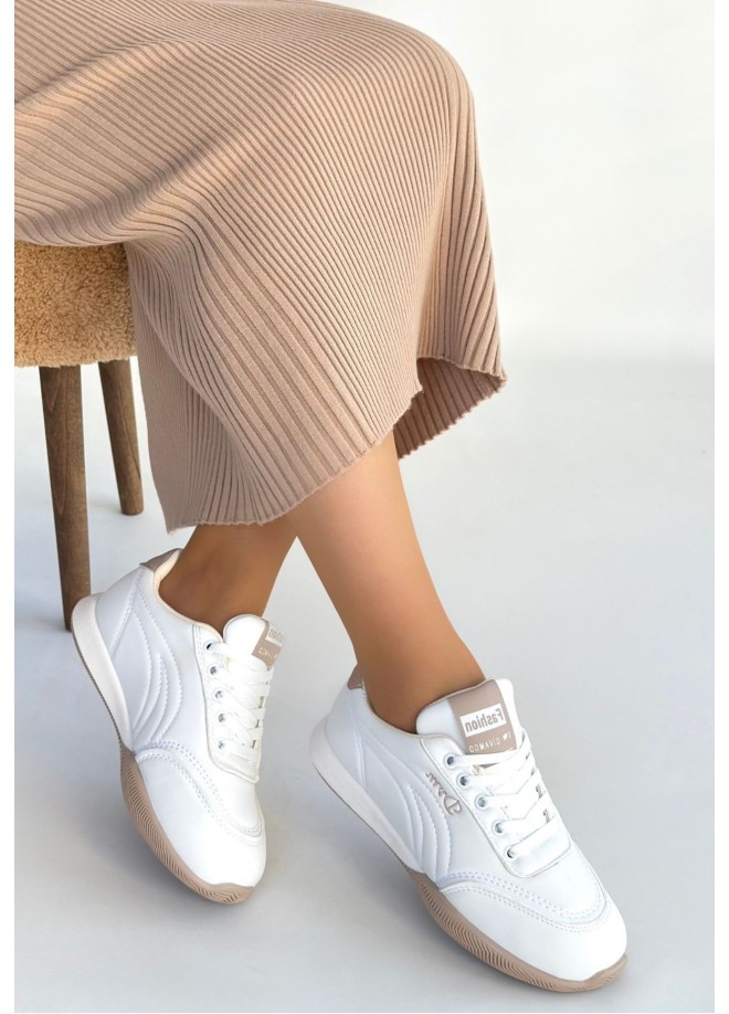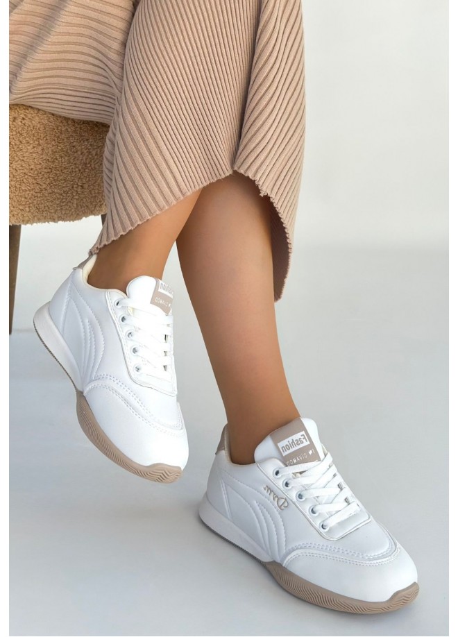 Tawen Beyaz Cilt Bağcıklı Spor Ayakkabı