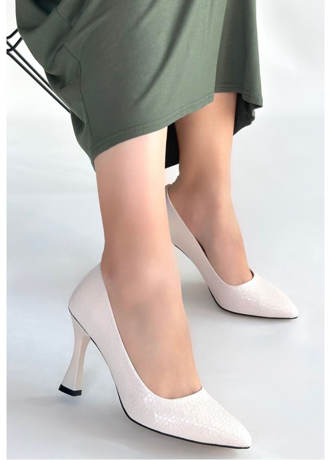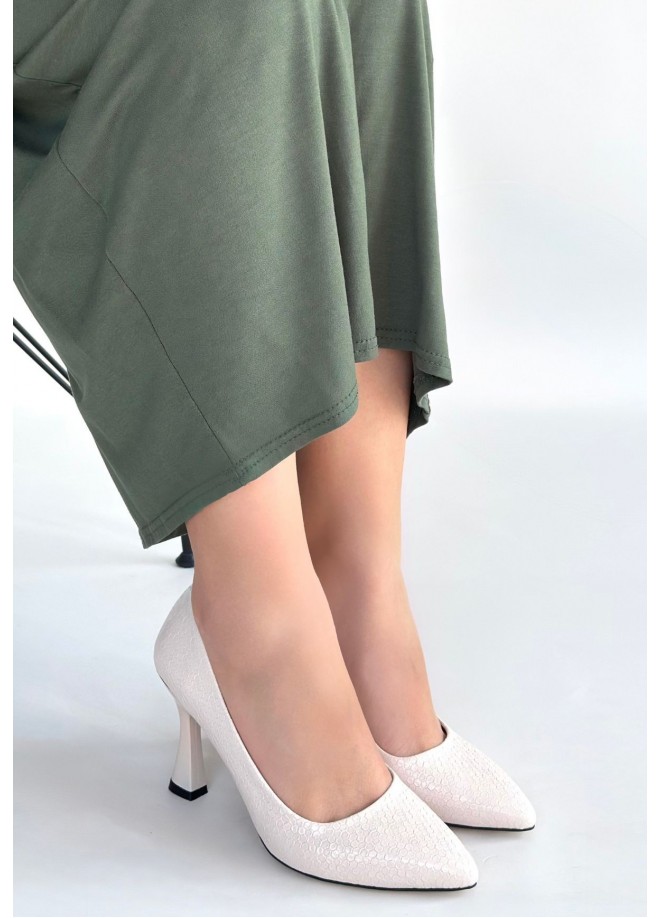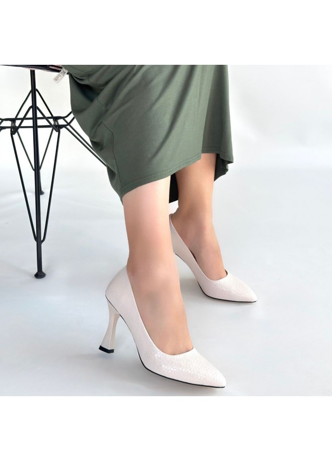 Merio Bej Baskılı Rugan Topuklu Ayakkabı