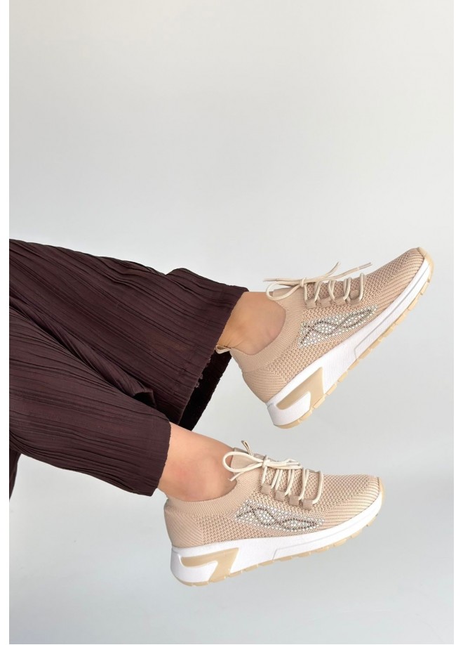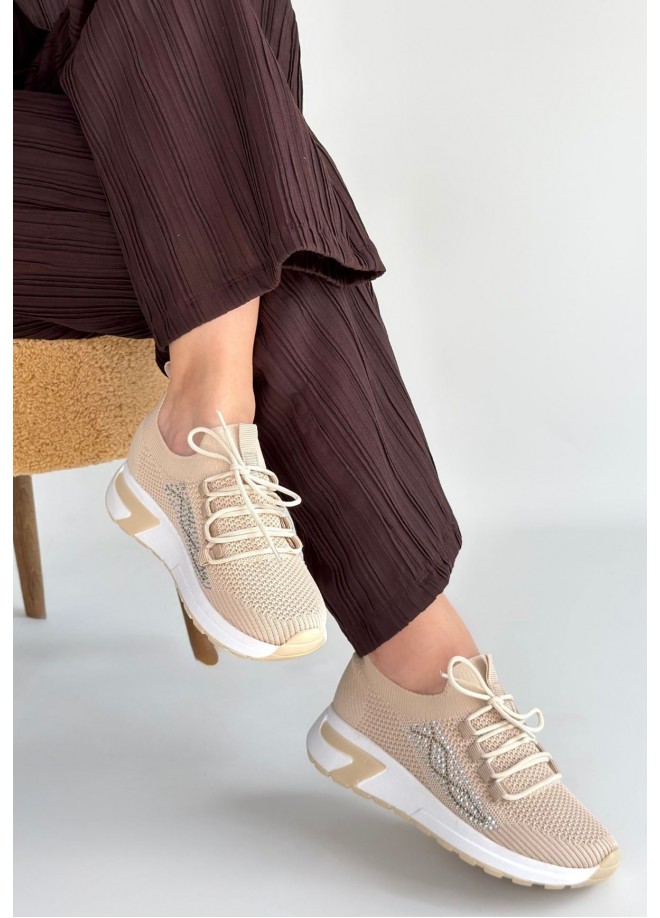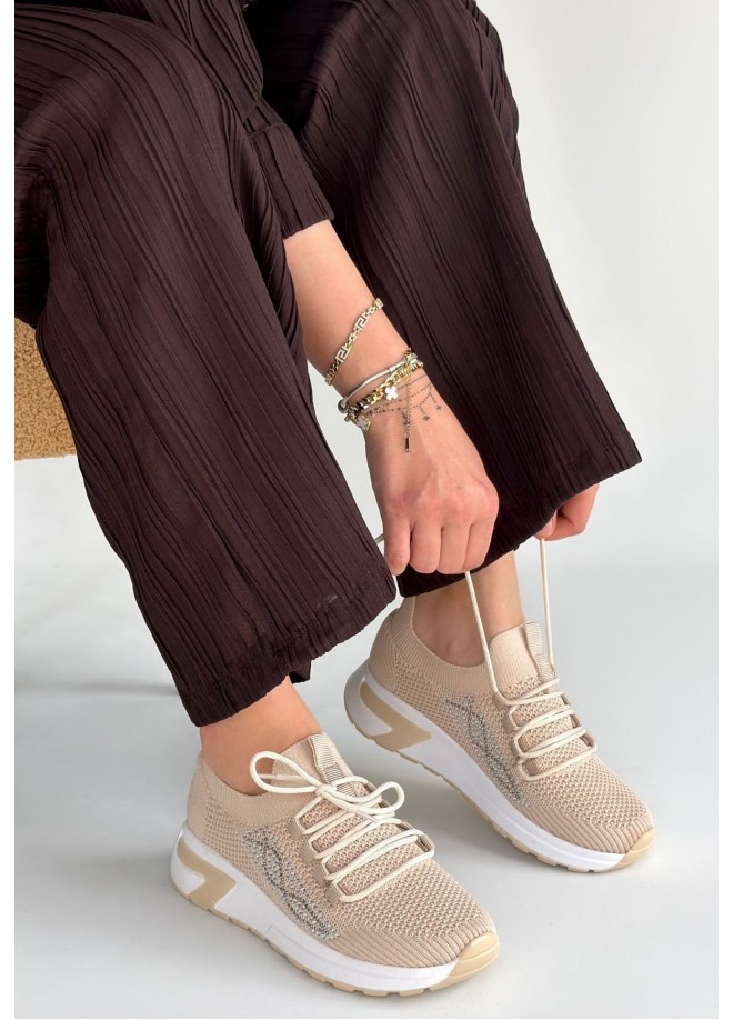 Belan Bej Triko Bağcıklı Spor Ayakkabı