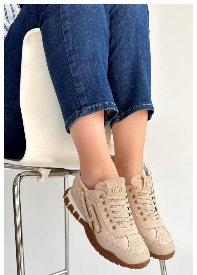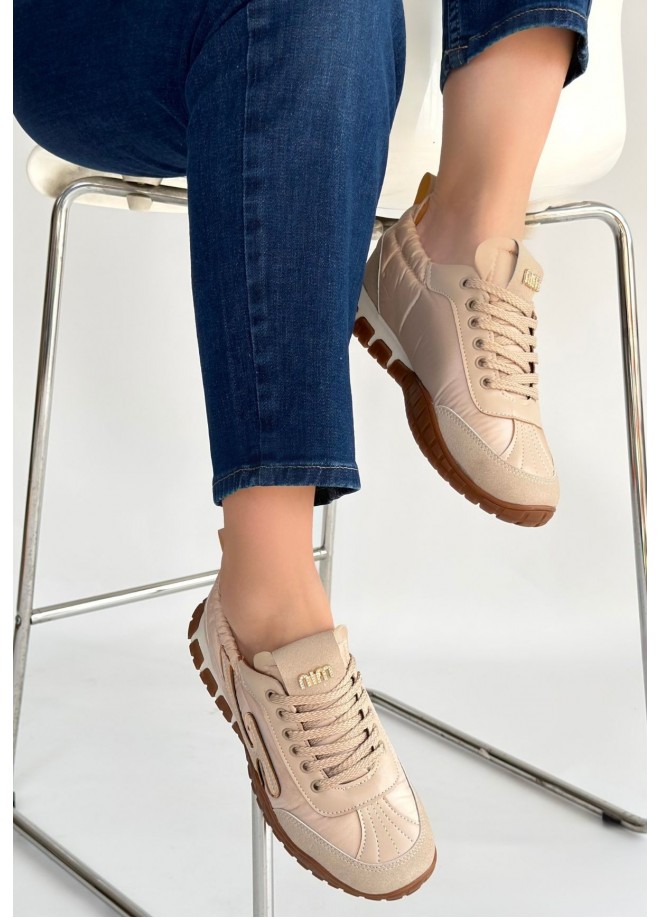 Huer Bej Nubuk Bağcıklı Spor Ayakkabı