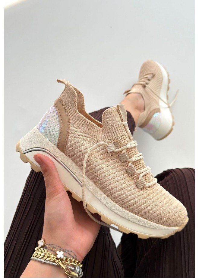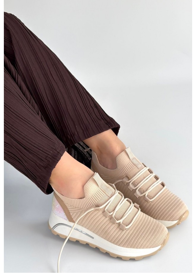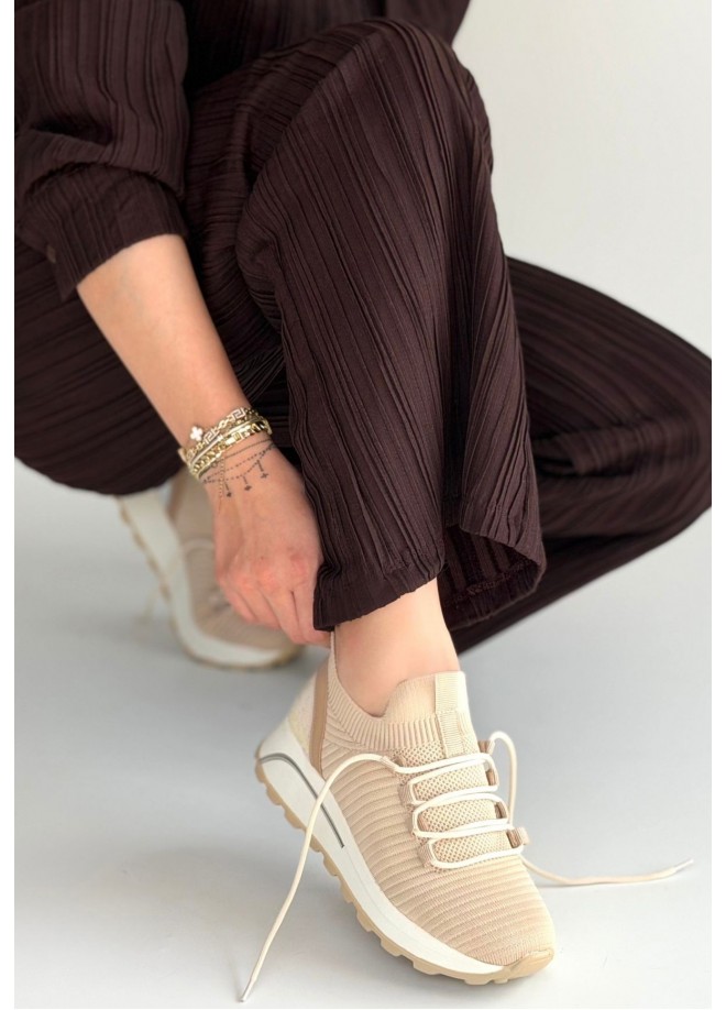 Feort Bej Triko Bağcıklı Spor Ayakkabı