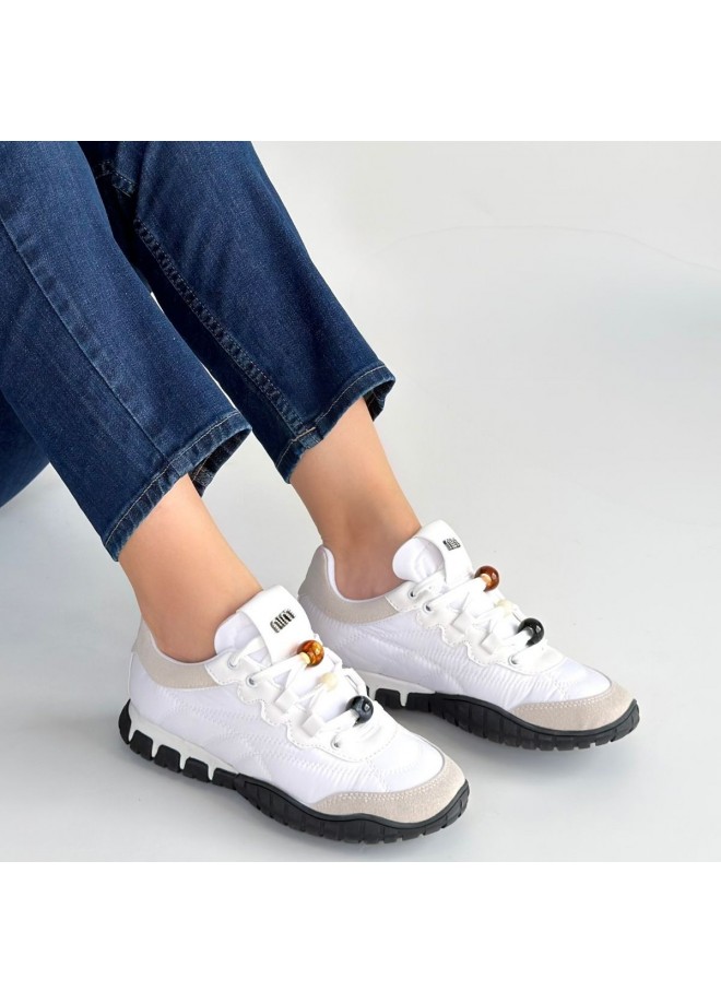 Tues Beyaz Nubuk Bağcıklı Spor Ayakkabı