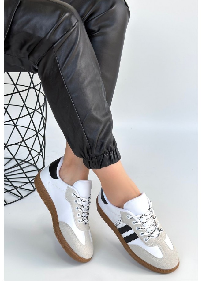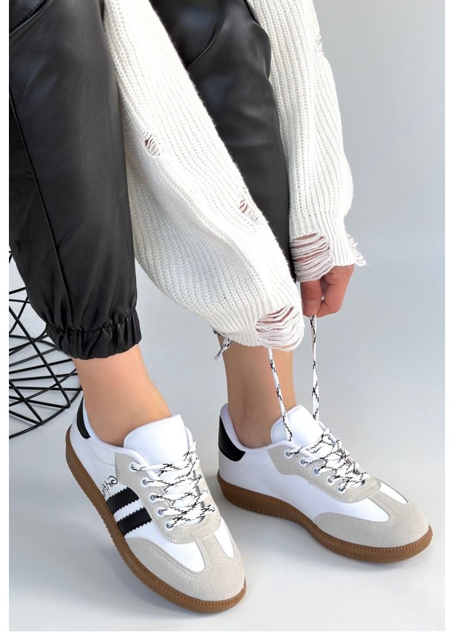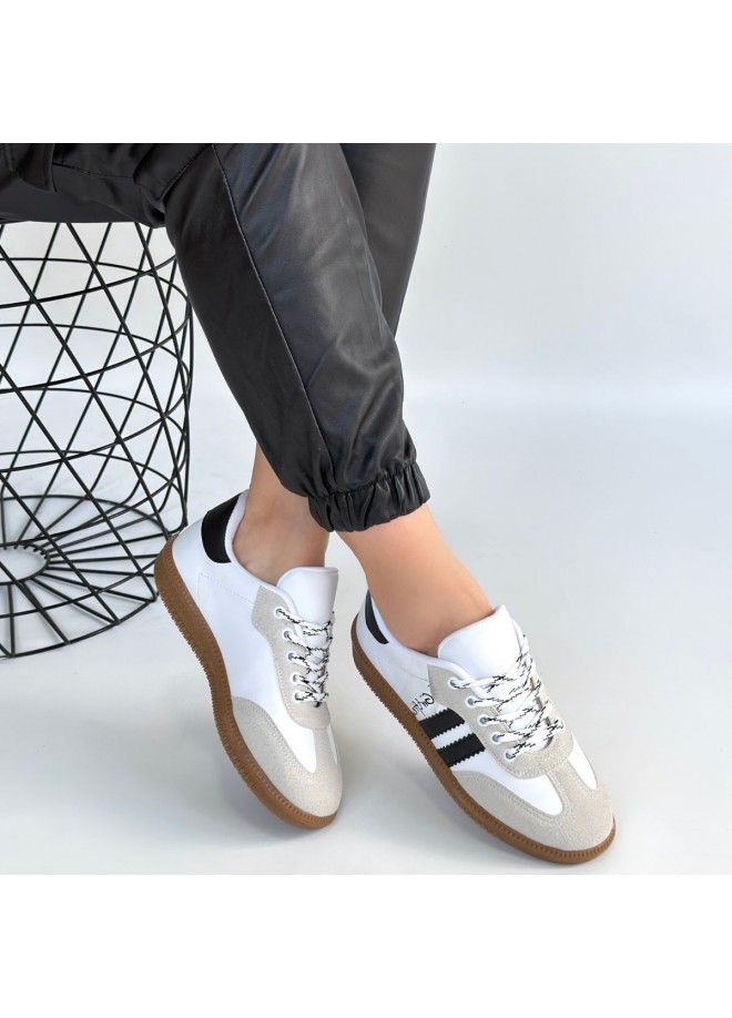 Zerti Beyaz Cilt Bağcıklı Spor Ayakkabı
