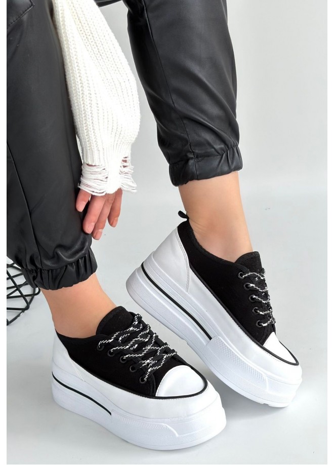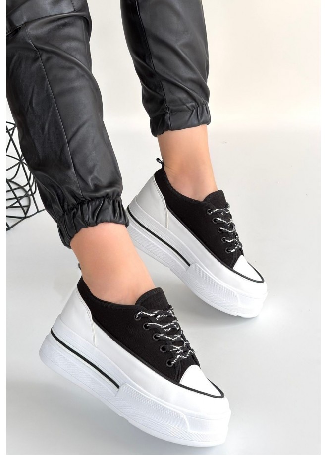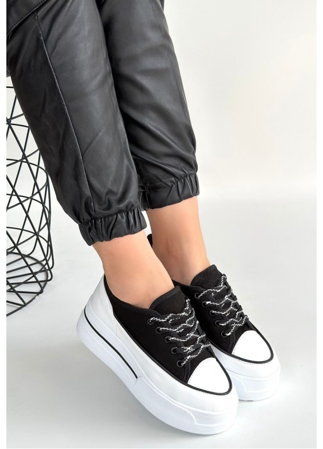 Dalen Siyah Keten Bağcıklı Spor Ayakkabı