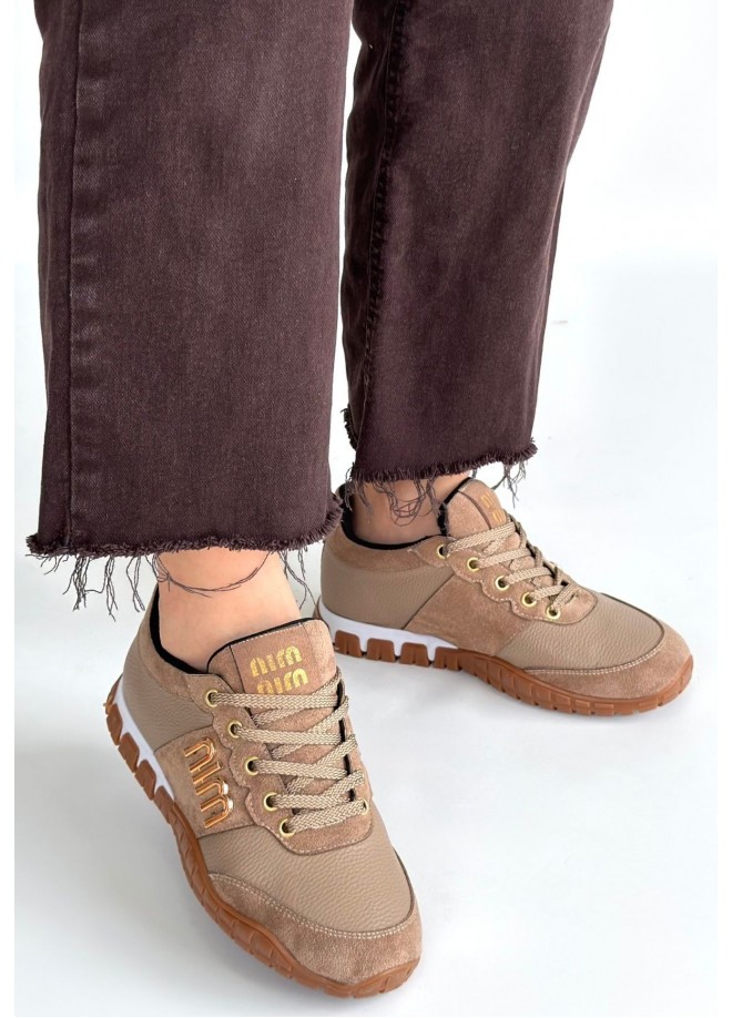 Marje Vizon Cilt Bağcıklı Spor Ayakkabı