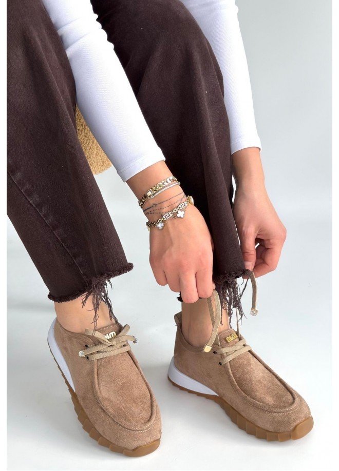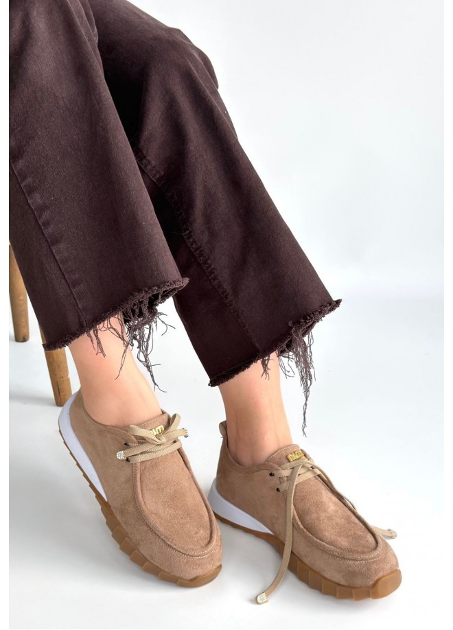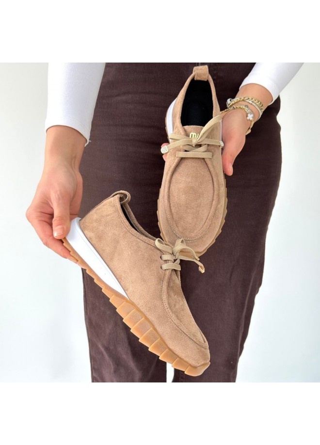 Sier Bej Süet Bağcıklı Spor Ayakkabı