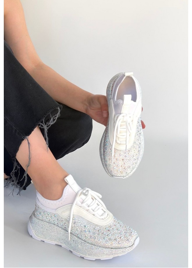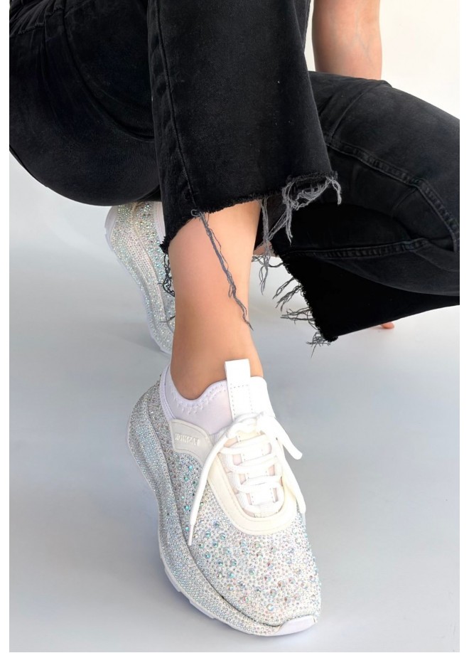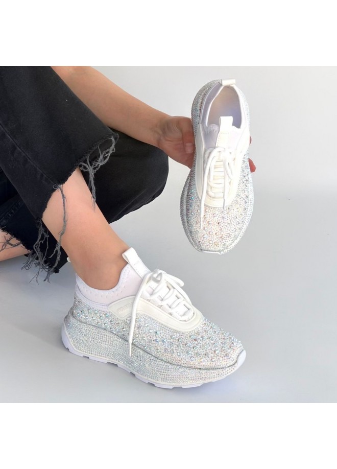 Rimay Beyaz Cilt Boncuk İşlemeli Spor Ayakkabı