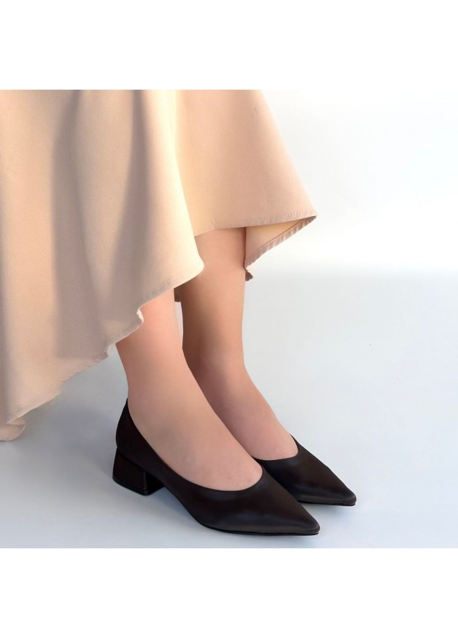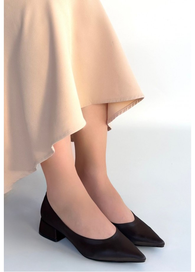 Ferla Acı Kahve Cilt Topuklu Ayakkabı