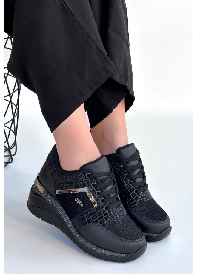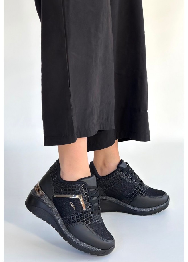 Geja Siyah Cilt Bağcıklı Spor Ayakkabı