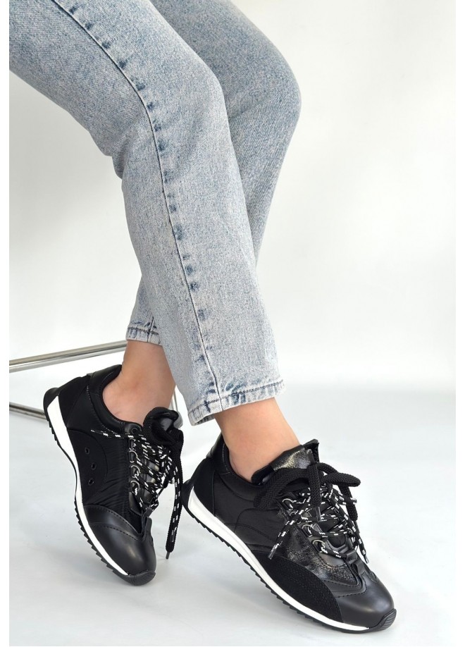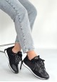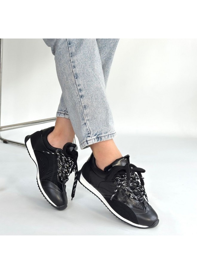 Reat Siyah Cilt Bağcıklı Paraşüt Detaylı Spor Ayakkabı