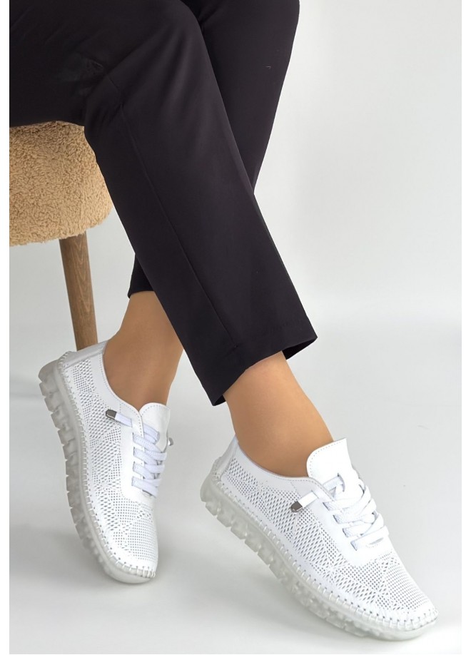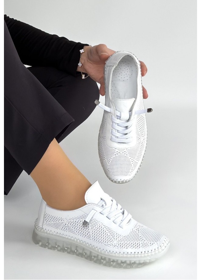 Merja Beyaz Deri Bağcıklı Spor Ayakkabı