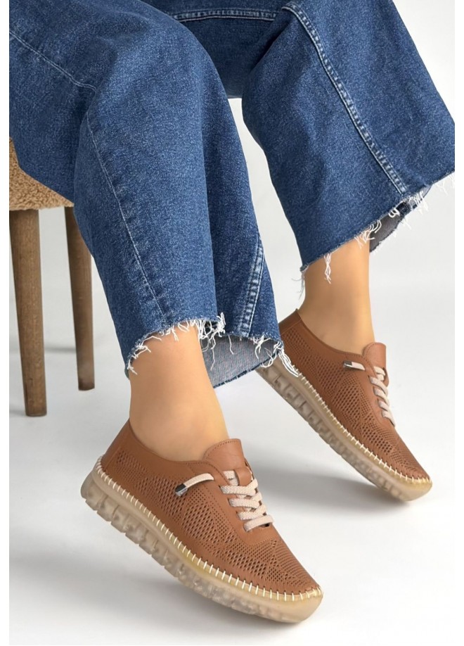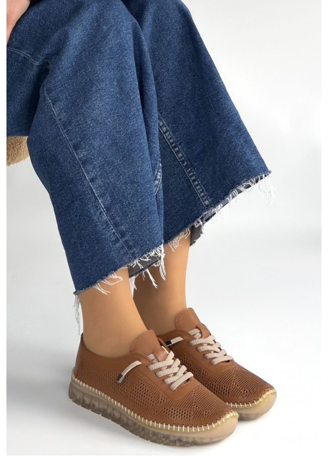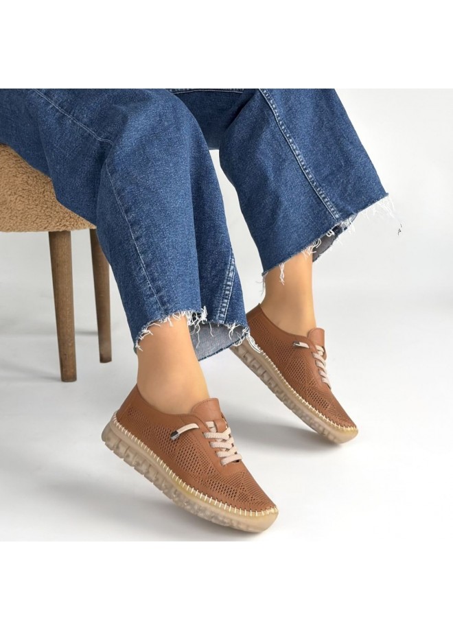 Merja Taba Deri Bağcıklı Spor Ayakkabı