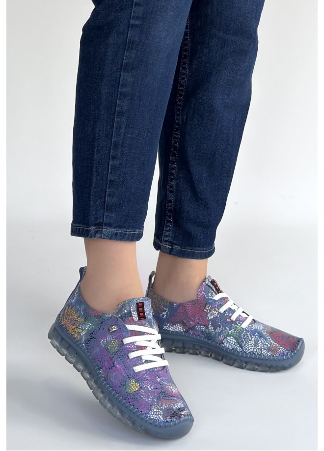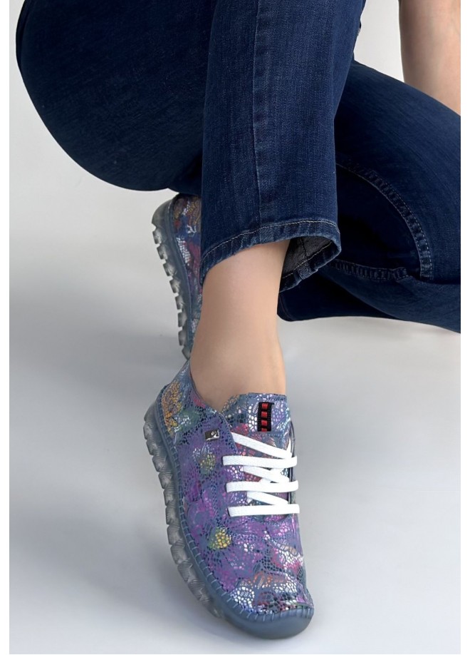 Jiten Mor Desenli Deri Bağcıklı Spor Ayakkabı