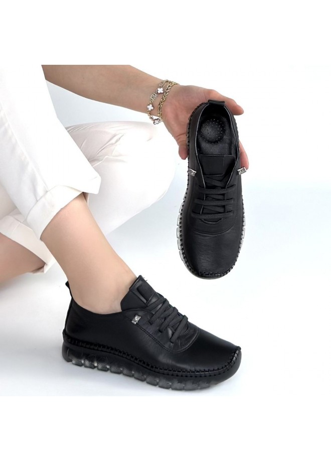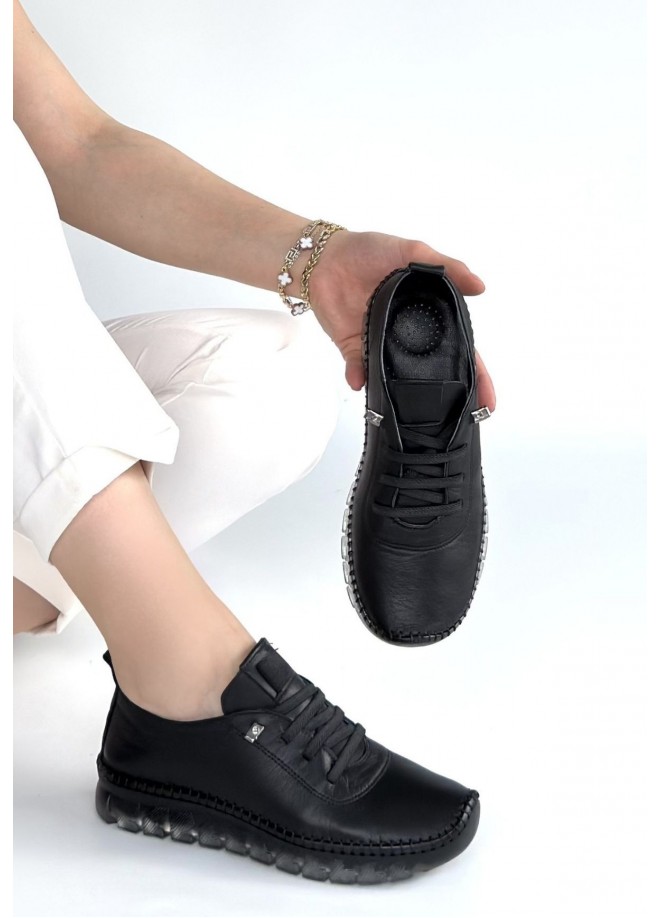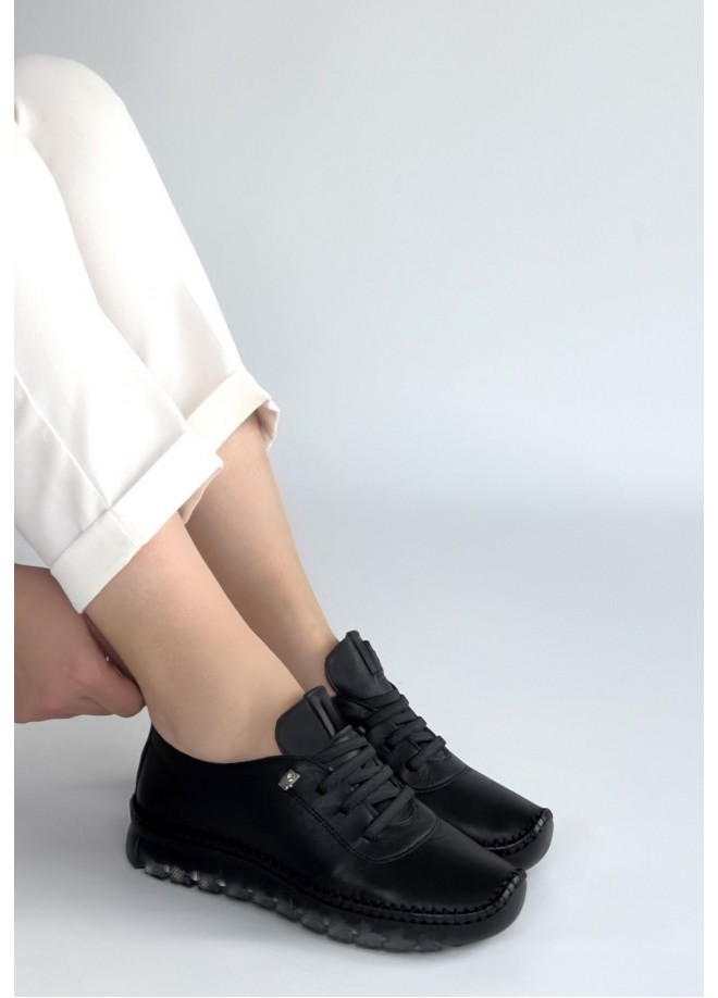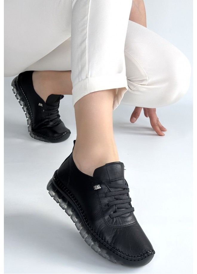 Jiten Siyah Deri Bağcıklı Spor QAyakkabı