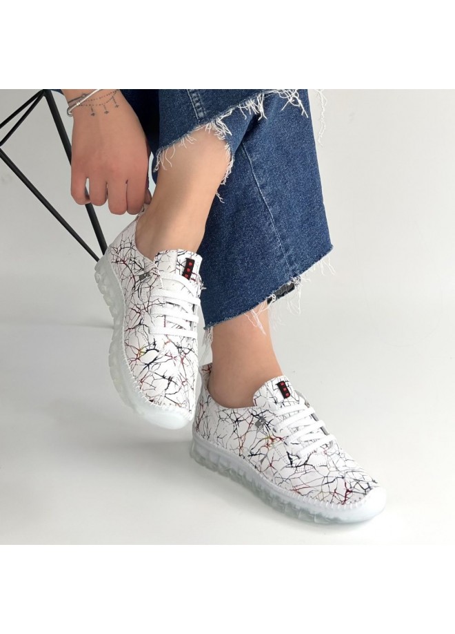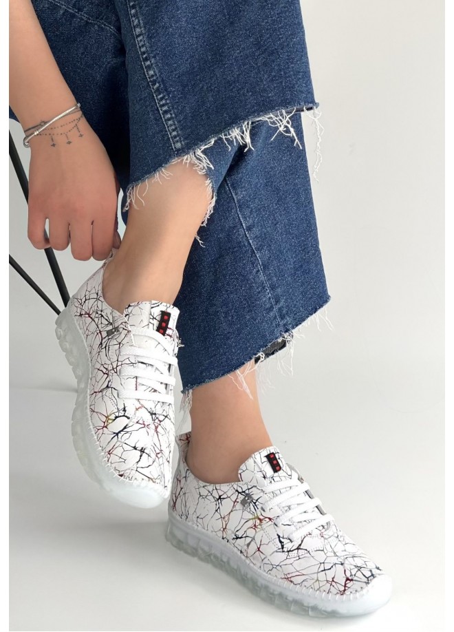 Jiten Beyaz Desenli Deri Bağcıklı Spor Ayakkabı