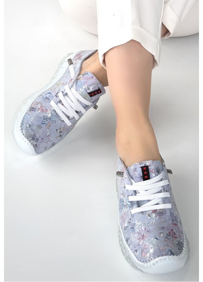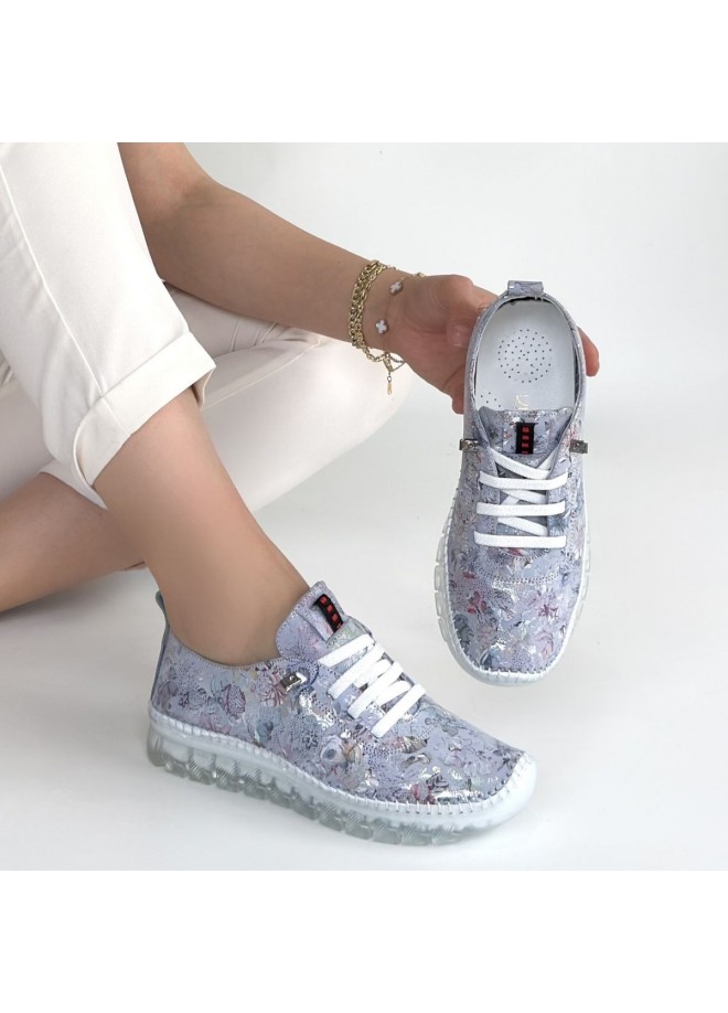 Jiten Lila Desenli Deri Bağcıklı Spor Ayakkabı