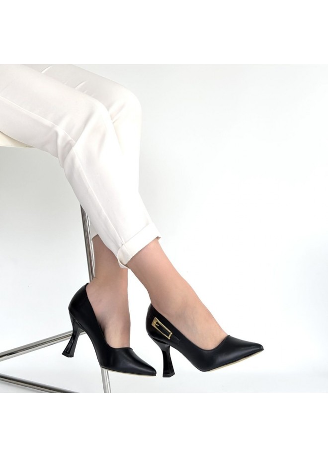 Cerin Siyah Cilt Topuklu Ayakkabı