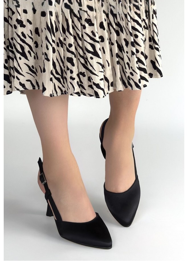Minde Siyah Saten Topuklu Ayakkabı