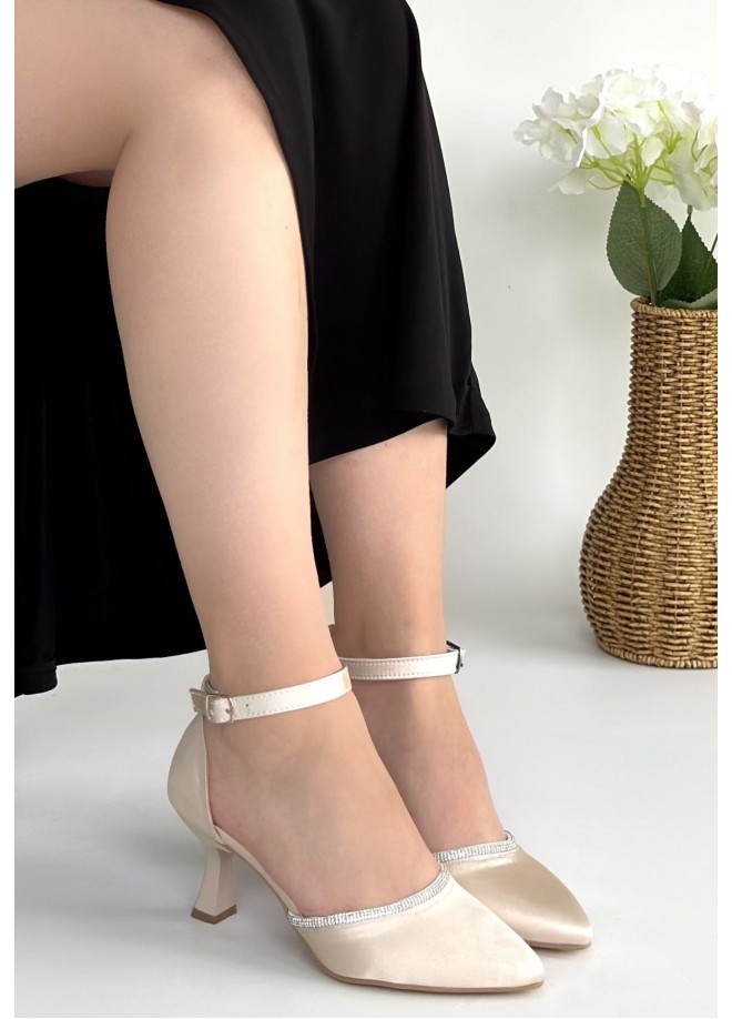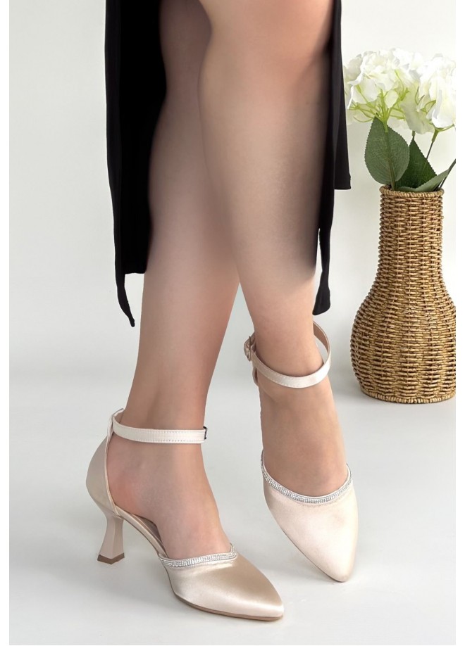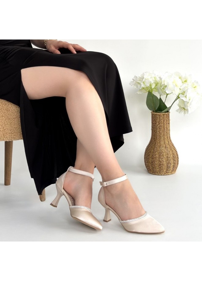 Mejja Bej Saten Topuklu Ayakkabı