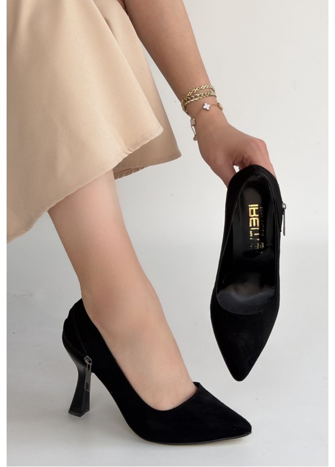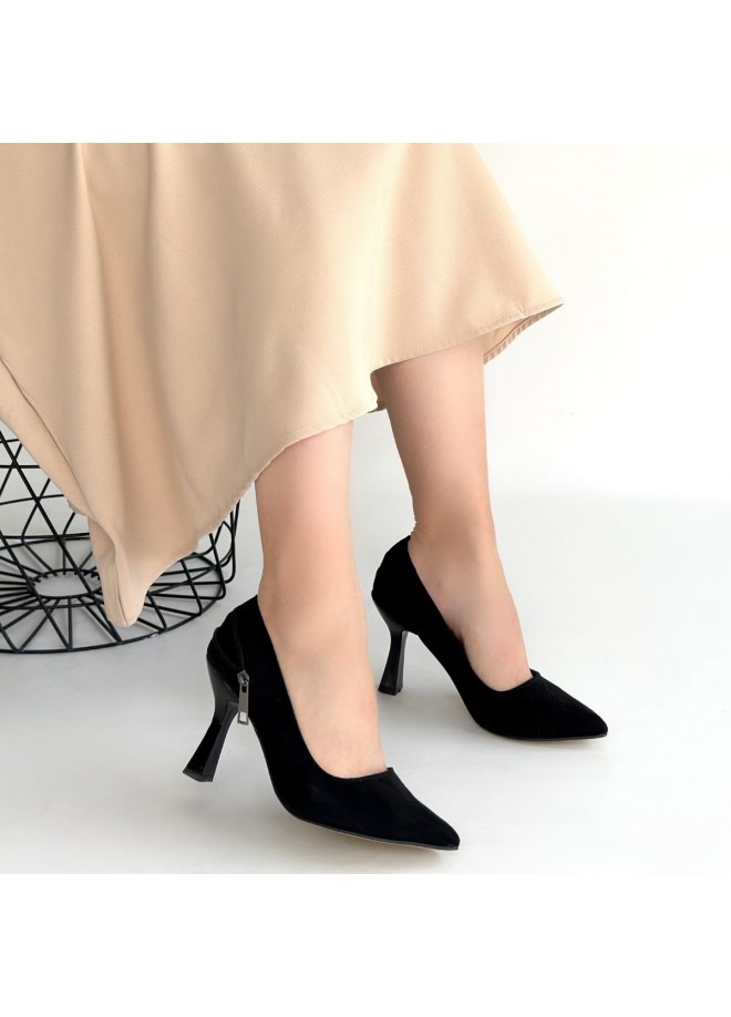 Retta Siyah Süet Topuklu Ayakkabı