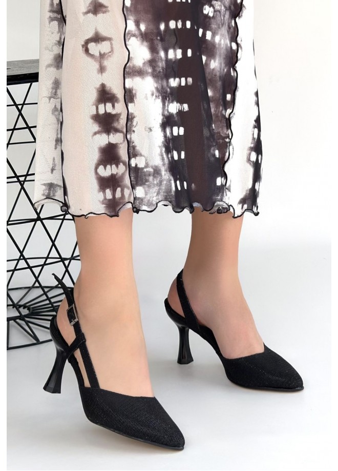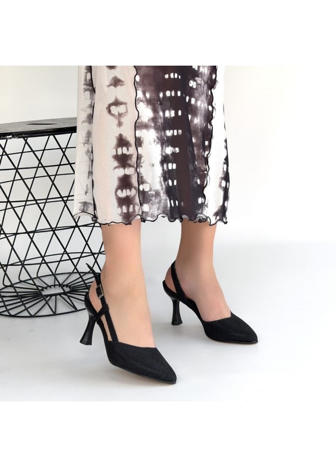 Minde Siyah Cilt Simli Topuklu Ayakkabı