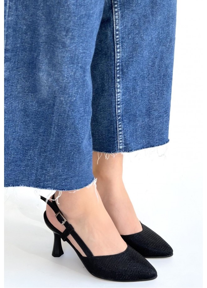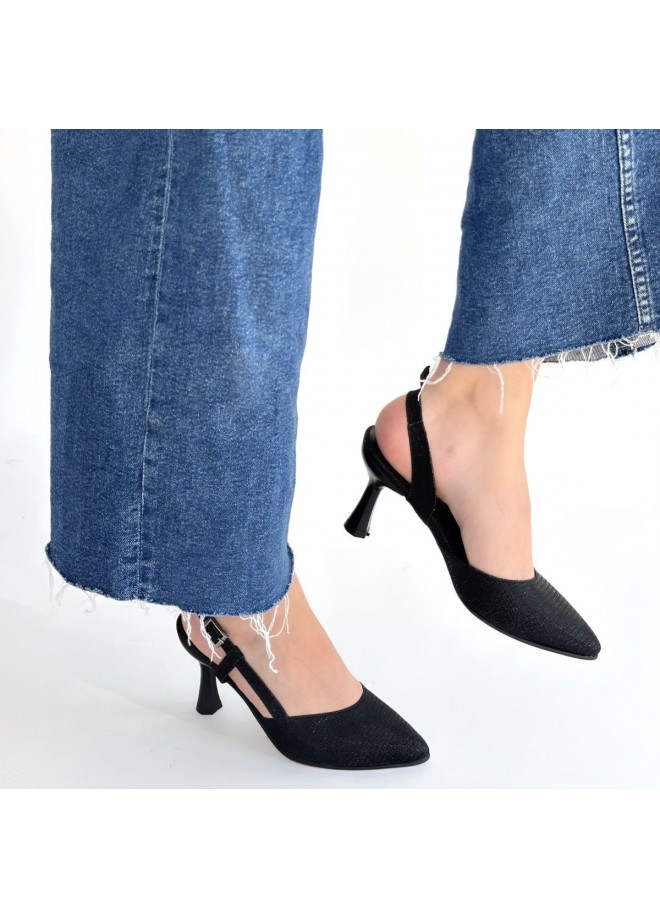 Joga Siyah Saten Simli Topuklu Ayakkabı