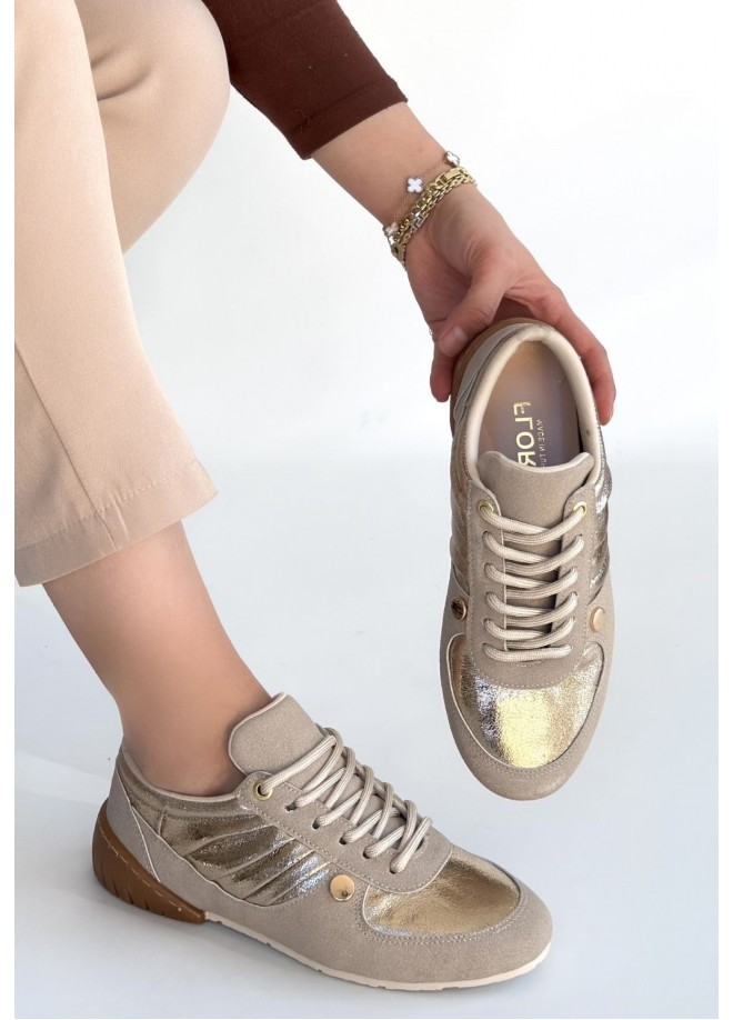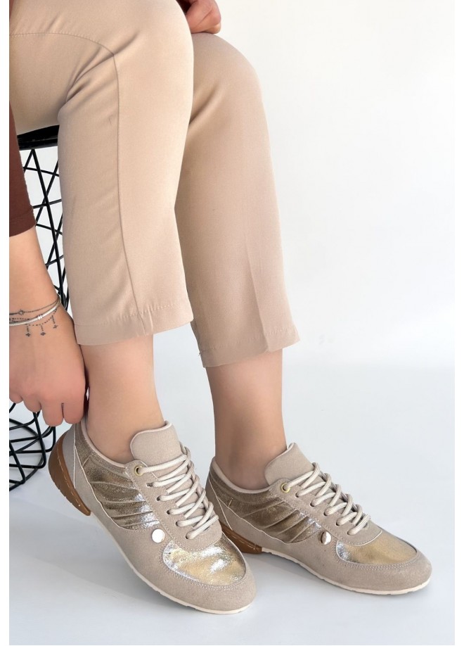 Jawen Bej Nubuk Gold Detaylı Spor Ayakkabı
