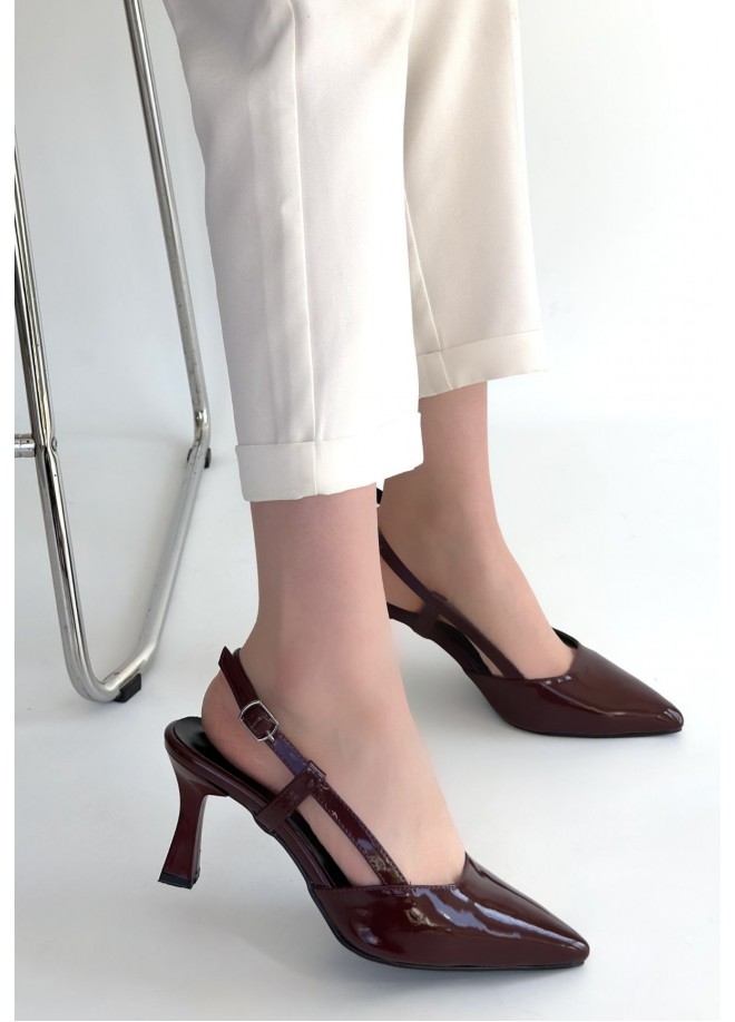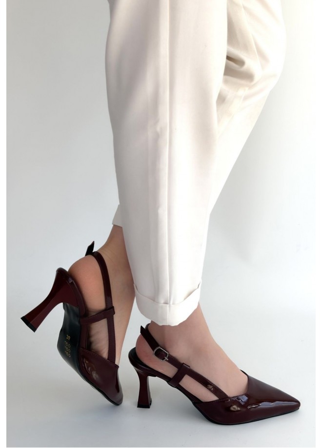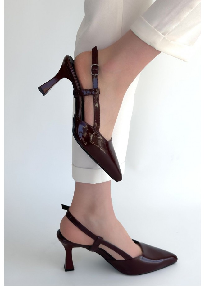 Hoost Bordo Rugan Topuklu Ayakkabı