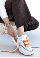 Aleh Beyaz Cilt Turuncu Detaylı Çift Bağcıklı Spor Ayakkabı