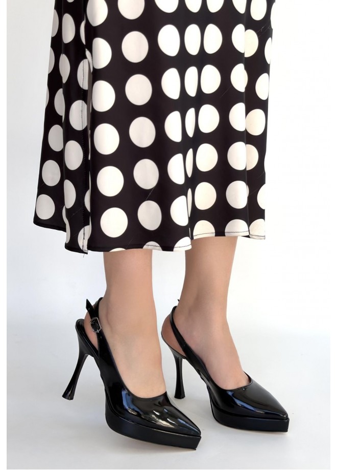 Arim Siyah Rugan Platform Topuk Ayakkabı