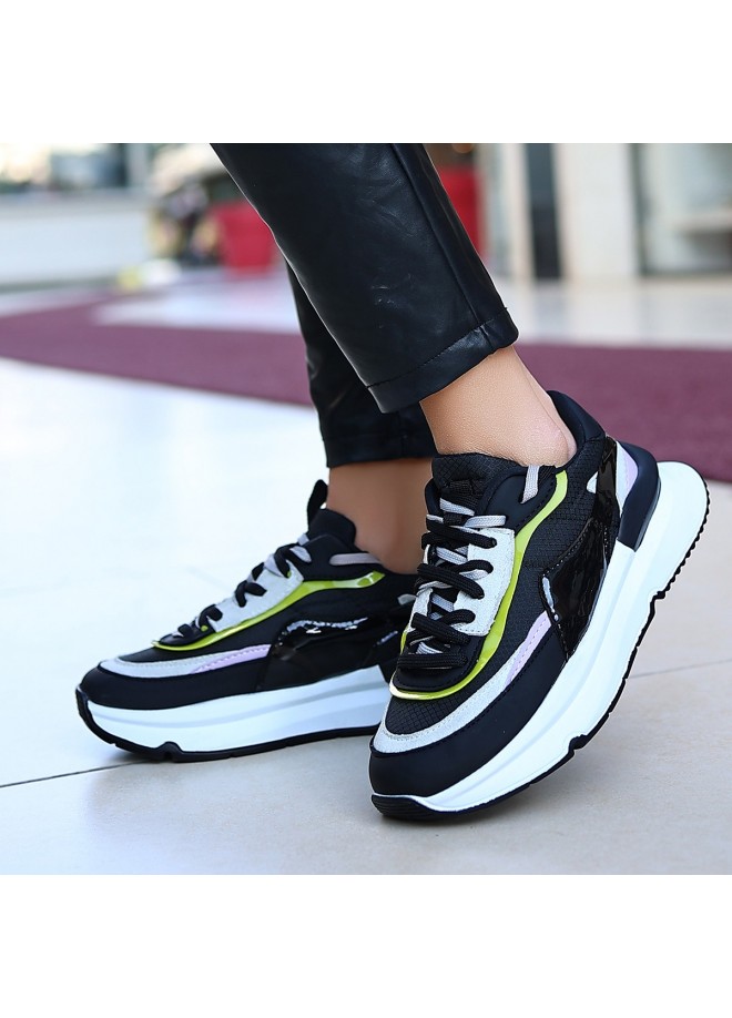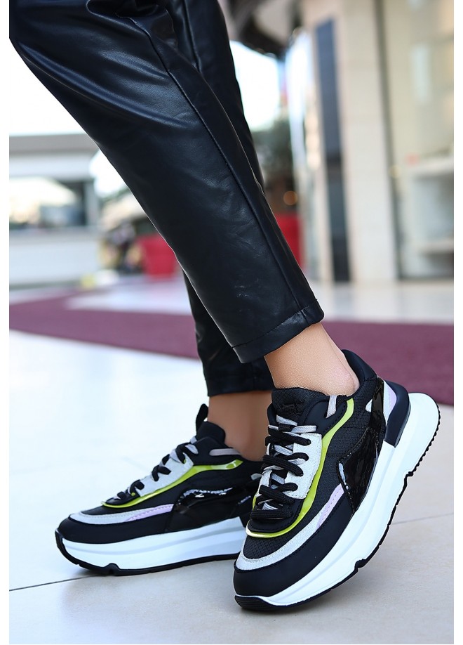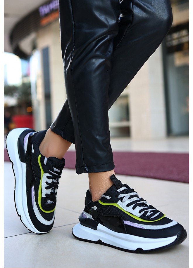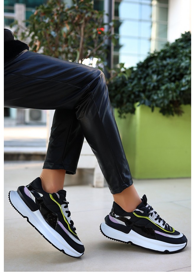 Aleh Siyah Cilt Lila Detaylı Spor Ayakkabı
