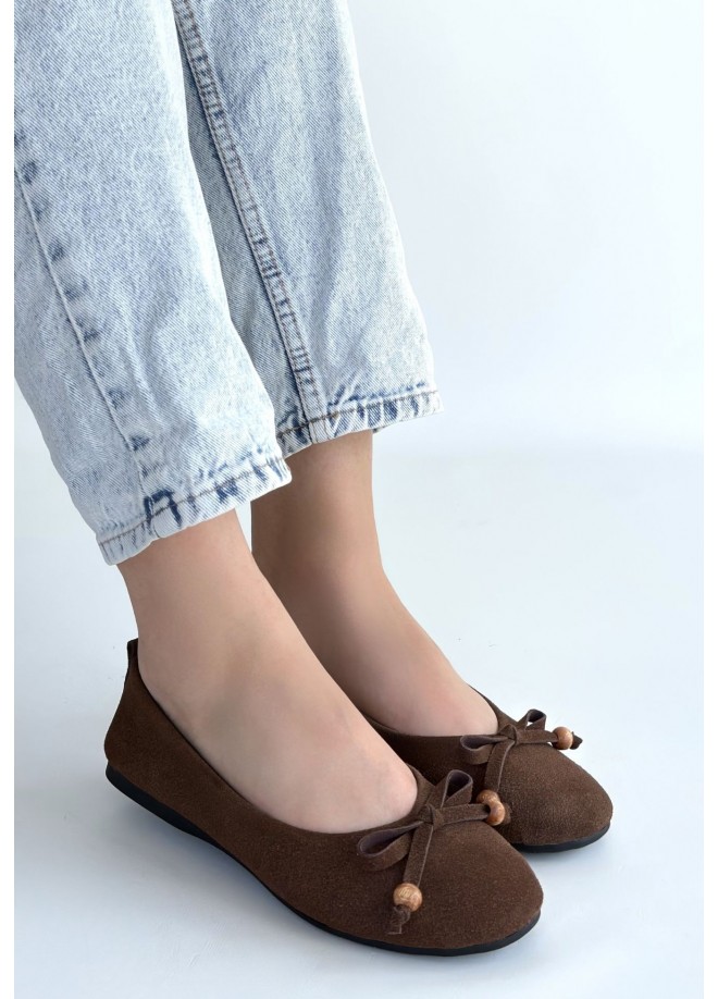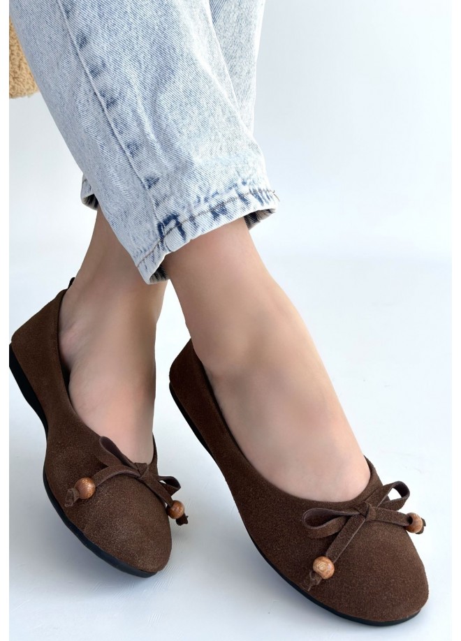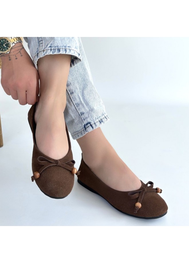 Cear Kahverengi Deri Tozu Süet Babet Ayakkabı